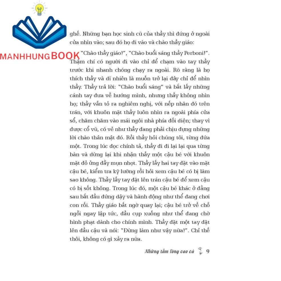 Xuyên suốt tiểu thuyết là những vấn đề xã hội như sự nghèo đói, Những tấm lòng cao cả được yêu chuộng vì văn phong giản dị và ý nghĩa giáo dục về tình nhân ái.Những tấm lòng cao cả được viết theo hình thức nhật ký của Enrico Bottini, một cậu học trò 10 tuổi học tiểu học ở Ý. Gia đình cậu thuộc tầng lớp thượng lưu trong khi nhiều bạn cùng lớp lại xuất thân từ tầng lớp lao động. Cốt truyện diễn ra theo thứ tự thời gian xuyên suốt năm lớp 3 của Enrico. Ở đó Enrico đã được tiếp xúc với những cậu bé đủ mọi tính cách …