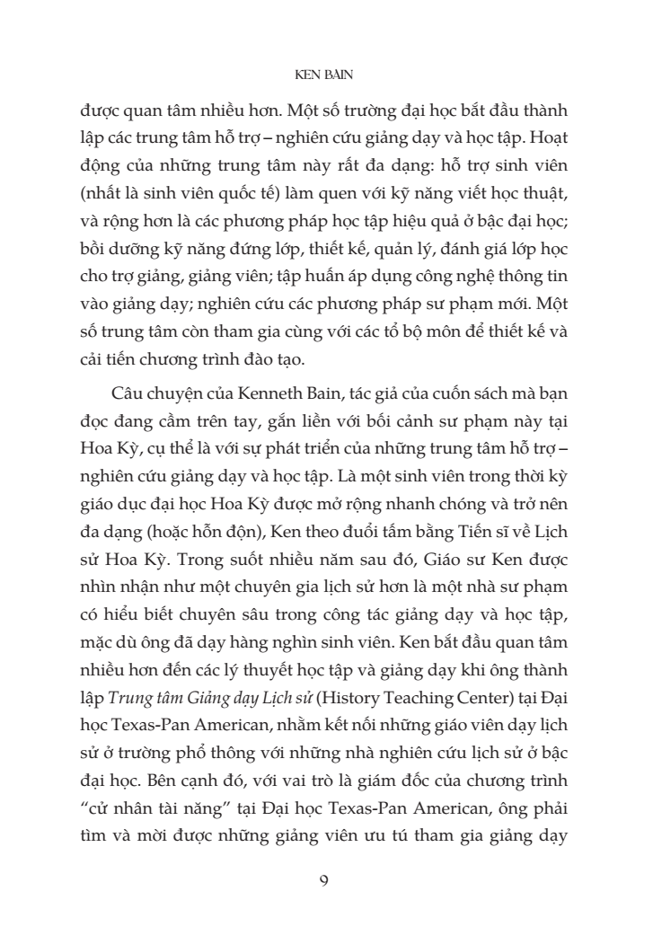 Ken Bain hiện là viện trưởng của Học viện Nhà giáo Ưu tú (Best Teachers Institute), một tổ chức nghiên cứu và giáo dục có trụ sở tại New Jersey và Washington, D.C. Ông từng là hiệu phó thường trực và hiệu phó phụ trách khối nghiên cứu tại Viện Đại học District of Columbia, cũng như thành lập các trung tâm giảng dạy tại bốn trường đại học lớn (Vanderbilt, Northwestern, NYU và Montclair State). Ken cũng là một nhà sử học với các tác phẩm chủ yếu tập trung vào lịch sử chính trị Hoa Kỳ giữa thế kỷ XX, ví dụ như The March to Zion và Last Journey Home: Killing Roosevelt. Ông đã dành nhiều thời gian để nghiên cứu về các vấn đề thuộc lĩnh vực sư phạm và đã đóng góp vào học bổng nghiên cứu trong những lĩnh vực đó. Ông đã được mời thuyết trình tại gần 500 trường đại học và sự kiện ở Hoa Kỳ, Canada, Mexico, Nam Mỹ, châu Âu, châu Á, châu Phi và Úc. Các nghiên cứu của ông tập trung vào nhiều vấn đề, bao gồm việc học sâu cũng như tạo ra môi trường học tập đề cao tư duy phản biện và diễn ra tự nhiên. Ông thường xuyên tham gia cố vấn cho các trường đại học, chính phủ và Liên minh Châu Âu.