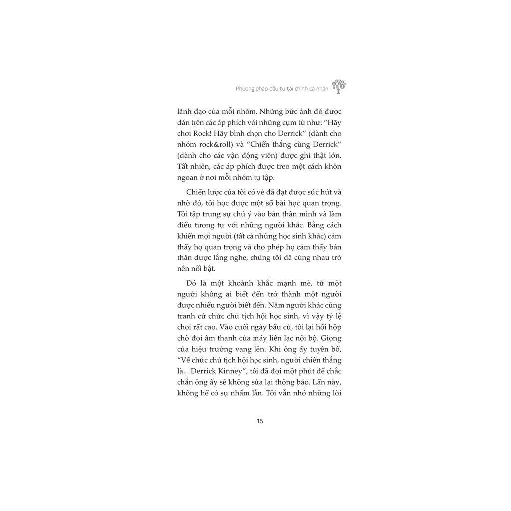 Mua tại TiktokSách - Phương Pháp Đầu Tư Tài Chính Cá Nhân Bạn ghét nợ nần, bạn ghét chứng kiến gia đình cãi vã vì thiếu tiền, bạn ghét cuộc sống không được làm những điều mình thích chỉ vì không có đủ tài chính, và rồi bạn nghĩ tiền thật xấu xa khi khiến cuộc sống trở nên áp lực. Nhưng rõ ràng, bạn cũng biết tiền không hề xấu. Và bạn vẫn luôn muốn có nhiều tiền hơn để khiến cuộc sống của bản thân cùng gia đình tốt đẹp hơn. Vậy sẽ thế nào nếu bạn vừa kiếm được nhiều tiền hơn, vừa có một quỹ tiết kiệm lớn hơn, vừa xây dựng được những khoản đầu tư hiệu quả, đồng thời tạo ra những tác động tích cực cho thế giới và giúp ích cho hàng ngàn người khốn khổ khác? Đó là một ý tưởng tuyệt vời mà bạn hoàn toàn có thể thực hiện ngay hôm nay. Và “Phương pháp đầu tư tài chính cá nhân” sẽ giúp bạn làm điều đó. Cuốn sách được viết bởi cố vấn tài chính nổi tiếng, Derrick Kinney, sẽ giúp bạn học được cách kiếm nhiều tiền hơn – tiết kiệm nhiều hơn – trao đi nhiều hơn để tạo ra ý nghĩa lớn lao cho xã hội, bằng cách cung cấp một kế hoạch hành động cụ thể bao gồm: • 5 tư duy về tiền • 3 đòn bẩy của tiền: Tiết kiệm nhiều hơn, xóa nợ và kiếm nhiều tiền hơn • 7 bài tập để tự xây dựng mục đích cống hiến cho xã hội bằng tiền của bạn Đừng chỉ kiếm tiền, hãy kiếm những đồng tiền tốt để cuộc sống của bản thân tốt hơn và để cộng đồng cùng trở nên tốt đẹp hơn. Hãy lật giở cuốn sách này và khám phá cuộc cách mạng tiền tốt ngay hôm nay!