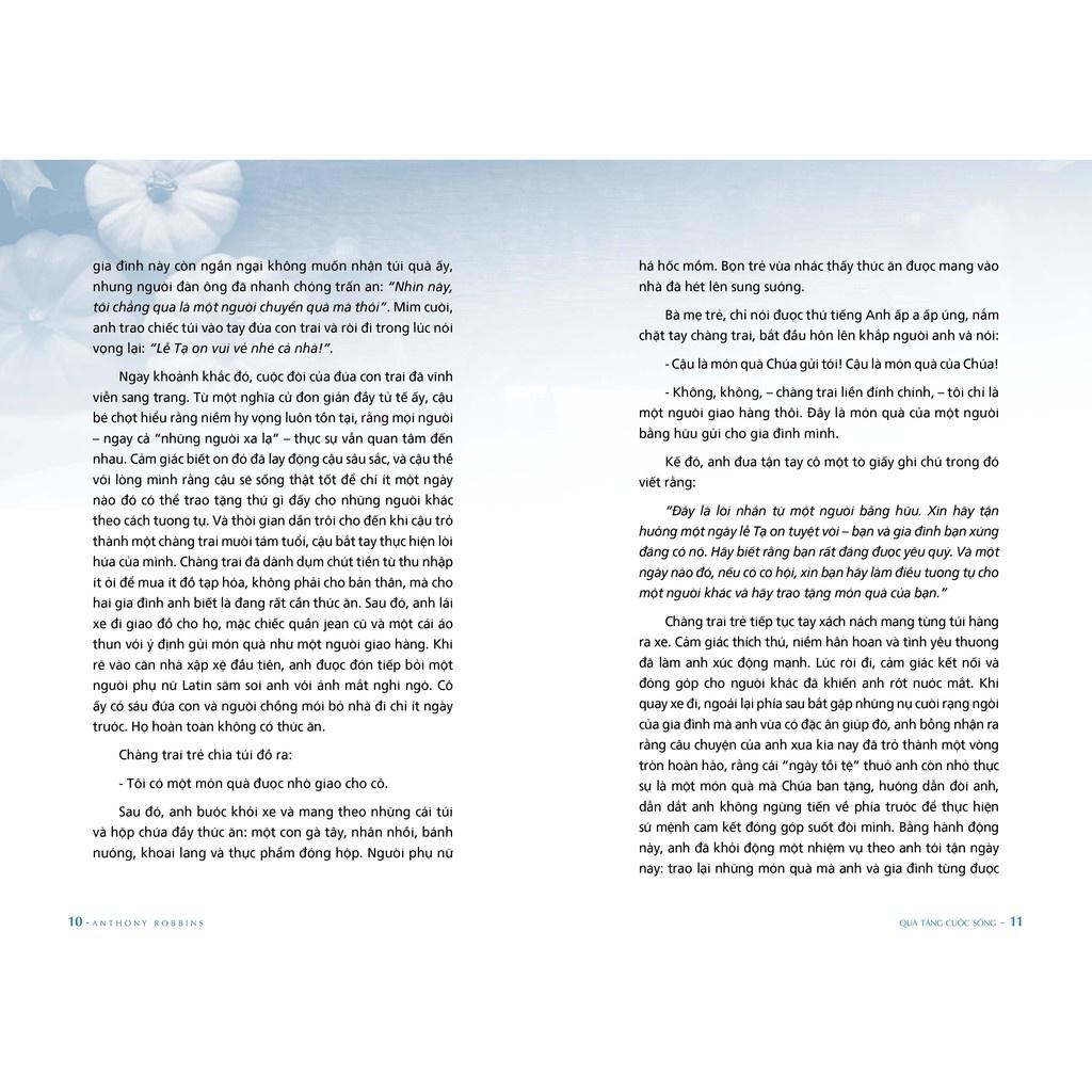 “Quà tặng cuộc sống” là tập hợp của những mẩu chuyện truyền cảm hứng, trong đó có những mẩu chuyện từ chính cuộc đời Anthony Robbins và những tấm gương vượt khó, vươn lên thành công trong cuộc sống như Colonel Sanders (người sáng lập KFC), và Walt Disney (nhà sáng lập hãng phim Walt Disney), Michael Jordan ( huyền thoại bóng rổ Mỹ) ….