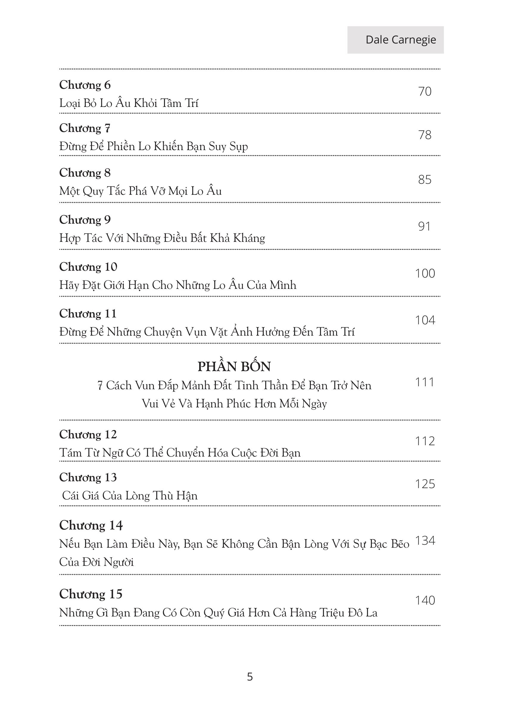- Số trang: 260 GIỚI THIỆU SÁCH Sau Đắc Nhân Tâm thì Quẳng gánh lo đi và vi sống (How to Stop Worrying and start living) là một trong những cuốn sách bán chạy nhất trên thế giới. Bất kỳ ai đang sống đều sẽ có những lo lắng thường trực về học hành, công việc, những hoá đơn, chuyện nhà cửa,... Cuộc sống không dễ dàng giải thoát bạn khỏi căng thẳng, ngược lại, nếu quá lo lắng, bạn có thể mắc bệnh trầm cảm. Quẳng Gánh Lo Đi Và Vui Sống khuyên bạn hãy khóa chặt dĩ vãng và tương lai lại để sống trong cái phòng kín mít của ngày hôm nay. Mọi vấn đề đều có thể được giải quyết, chỉ cần bạn bình tĩnh và xác định đúng hành động cần làm vào đúng thời điểm. Cuốn sách được viết ra bởi người tự nhận mình là "một trong những kẻ bất hạnh nhất New York " nhưng chỉ sau một thời gian ngắn bằng những nỗ lực vượt bậc của mình, ông đã trở thành 1 người xuất trúng được hàng triệu người biết đến. Cuốn sách là tập hợp các quy tắc giúp bạn giải quyết những cảm xúc tiêu cực, lo lắng và buồn bã. Không chỉ đưa được người đọc đến một cuộc sống thú vị và trọn vẹn hơn mà còn giúp chúng ta nhận thức rõ về bản thân và cả những người xung quanh SƠ LƯỢC VỀ NỘI DUNG Cuốn sách bao gồm 10 phần khác nhau, với rất nhiều những kinh nghiệm và các lời khuyên từ tác giả cũng như những người đi trước, giúp bạn có thể nhận thức được những điều đúng đắn nhất. Chi tiết