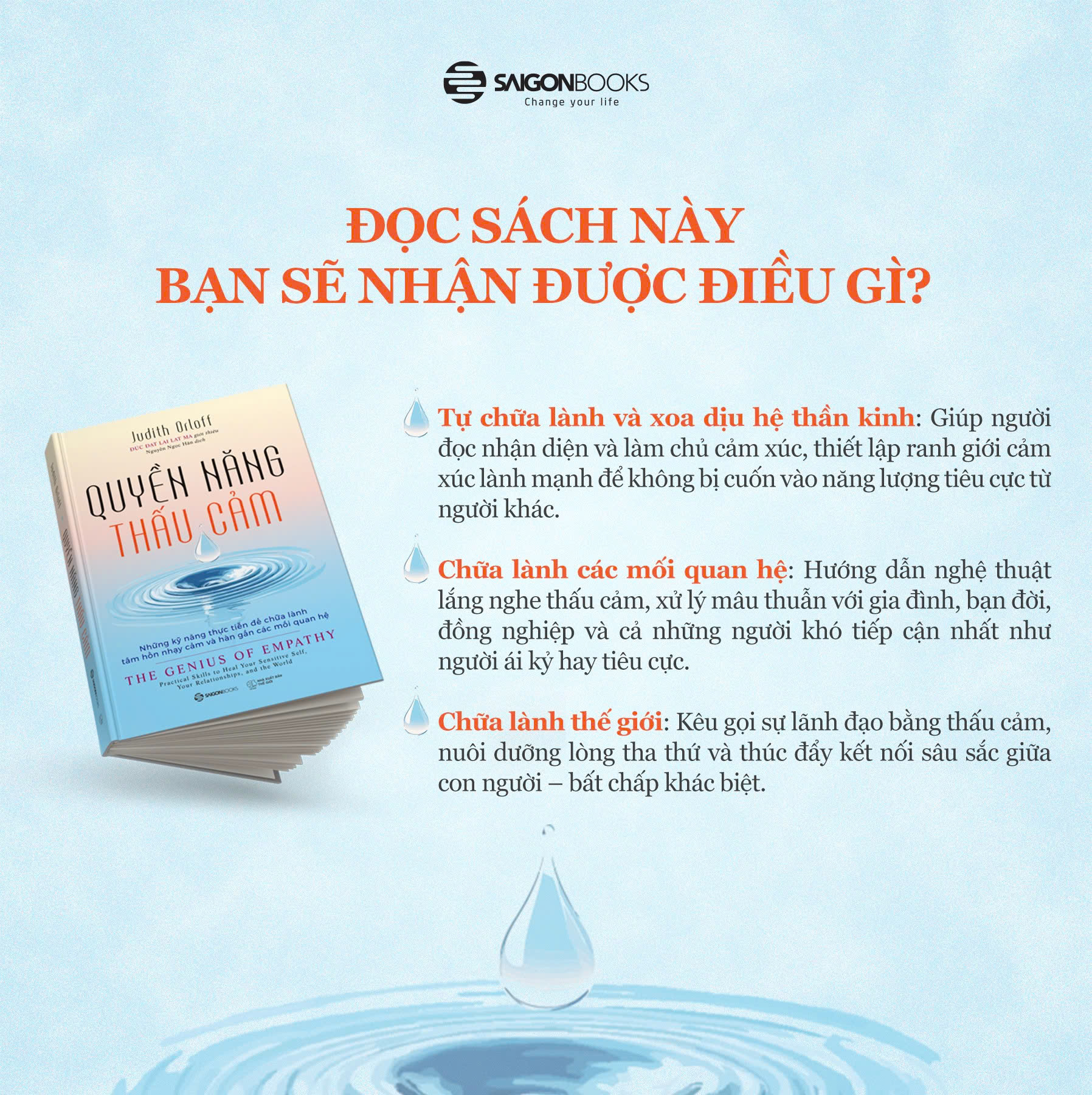 Mua tại TiktokQUYỀN NĂNG THẤU CẢM – NHỮNG KỸ NĂNG THỰC TIỄN ĐỂ CHỮA LÀNH TÂM HỒN NHẠY CẢM VÀ HÀN GẮN CÁC MỐI QUAN HỆ Thấu cảm không chỉ là lòng tốt – đó là một kỹ năng sống còn Trong thời đại phân cực, ồn ào và kiệt sức cảm xúc như hiện nay, sự thấu cảm không còn là một phẩm chất xa xỉ – mà trở thành một kỹ năng thiết yếu. Trong Quyền năng thấu cảm, bác sĩ Judith Orloff – một bác sĩ tâm thần đồng thời là một người thấu cảm – mang đến một cẩm nang sâu sắc và dễ áp dụng giúp mỗi người học cách kết nối với trái tim mình, để sống mạnh mẽ mà không bị kiệt sức bởi cảm xúc. Cuốn sách mở ra một hành trình ba bước: thấu cảm với chính mình, với người khác và với thế giới – với nhiều chiến lược cụ thể, bài tập thực hành và chia sẻ cá nhân chân thật. Chữa lành từ bên trong: Khi thấu cảm bắt đầu với chính bạn Trước khi có thể quan tâm đến người khác một cách bền vững, bạn cần học cách đối xử tử tế với chính mình. Sách giúp bạn nhận diện những rào cản vô hình như thói quen tự chỉ trích, suy nghĩ quá mức, hay xu hướng "gánh vác" cảm xúc của người khác. Tác giả không chỉ chia sẻ kinh nghiệm lâm sàng, mà còn dẫn dắt bạn qua những bài tập cụ thể để biết nói “không”, thiết lập ranh giới và tự chăm sóc bản thân – một cách dũng cảm và lành mạnh. Trong Quyền năng thấu cảm, bác sĩ Judith Orloff – một chuyên gia tâm thần học và cũng là người thấu cảm – dẫn dắt bạn khám phá sức mạnh thực tiễn và sâu sắc của lòng thấu cảm. Cuốn sách được chia làm ba phần, mỗi phần là một bước tiến trên hành trình chữa lành. PHẦN 1 – TỰ CHỮA LÀNH Chương 1: Thấu cảm là chìa khóa sống còn trong thế giới hỗn loạn. Chương 2: Ngừng suy nghĩ quá mức, sống từ trái tim. Chương 3: Học cách tử tế với chính mình và thiết lập ranh giới lành mạnh. Chương 4: Loại bỏ những rào cản nội tâm như sợ hãi, kiêu ngạo, oán giận. PHẦN 2 – CHỮA LÀNH CÁC MỐI QUAN HỆ Chương 5: Lắng nghe bằng trái tim để người khác thấy được thấu hiểu. Chương 6: Thấu cảm trong gia đình, bạn bè và công sở. Chương 7: Cho đi một cách lành mạnh, không kiệt sức. Chương 8: Nhận diện người ái kỷ, độc hại – và bảo vệ chính mình. PHẦN 3 – CHỮA LÀNH THẾ GIỚI Chương 9: Lãnh đạo bằng thấu cảm – sức mạnh mới của người dẫn dắt. Chương 10: Tha thứ để giải phóng mình khỏi gánh nặng cảm xúc. Chương 11: Cùng nhau kết nối, chữa lành và xây dựng một thế giới bao dung hơn. “Quyền năng thấu cảm” là món quà tuyệt vời cho những người nhạy cảm, những nhà lãnh đạo, những người đang tìm kiếm sự cân bằng trong các mối quan hệ và bất kỳ ai đang khao khát một cuộc sống nhẹ nhõm, sâu sắc và có ý nghĩa hơn.