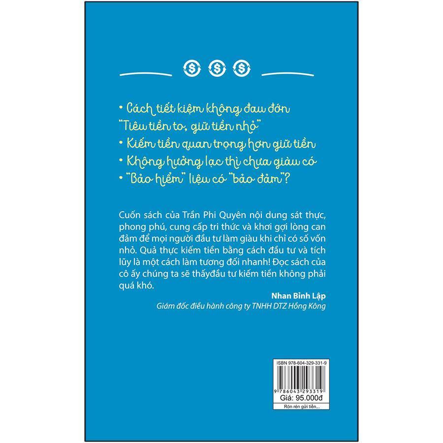 Rón rén gửi tiền tiết kiệm không bằng mạnh dạn đầu tư – Nghệ thuật quản lý tài chính giúp bạn đầu tư đâu trúng đó, là chia sẻ về đầu tư và quản lý tài chính của tác giả Trần Phi Quyên – một phóng viên, từng là người dẫn chương trình đài TTV, bản tin tài chính nổi tiếng của Đài Loan. Từ trải nghiệm bản thân và kinh nghiệm về đầu tư tài chính khi bà là dẫn chương trình bản tin tài chính của đài truyền hình Đài Loan, tác giả chia sẻ kinh nghiệm quản lý tài chính và đầu tư tài chính dành cho những người có nguồn vốn nhỏ, đặc biệt là phụ nữ để có được sự độc lập và tự chủ về tài chính. Không cần thiết phải trở nên giàu có mới đầu tư. Cuốn sách gồm 3 chương, trình bày về các vấn đề: quản lý tài chính cá nhân, đầu tư bất động sản, đầu tư cổ phiếu và chứng khoán hay bảo hiểm. Bà phân tích một cách cụ thể không giấu giếm về những ưu nhược điểm của các loại hình đầu tư đó. Quản lý tài chính cá nhân, nếu ngay từ nhỏ đã được sống trong môi trường cha mẹ có thói quen quản lý tài chính khoa học, cũng có thể coi con cái được hưởng là tài sản thừa kế vô cùng quý giá từ cha mẹ. Tự chủ được quản lý tài chính cá nhân giúp cho chúng ta không bị rơi vào hoàn cảnh bất ngờ. Theo bà quản lý tài chính giỏi không phải là “giữ tiền giỏi” hay “tiết kiệm tiền giỏi” mà cần đầu tư để sinh lời. Theo bà, quản lý tài chính giúp bạn có quyền lựa chọn và giúp bạn thực hiện được ước mơ của mình. “Khi có tiền, nếu hôn nhân không hạnh phúc, bạn có quyền quyết định bỏ đi, cũng có thể quyết định giữ lại; nhưng nêu không có tiền, thì thường thường chỉ có một lựa chọn là ở lại. Khi không có tiền, nếu sếp quá đáng ghét, bạn có thể bỏ đi,cũng có thể nhẫn nại chịu lấy; nhưng không có tiền, thì chỉ có một lựa chọn là nhẫn nại mà thôi. Quyền lựa chọn cực kỳ quan trọng trong cuộc đời.” Quản lý tài chính để thực hiện ước mơ của mình, chứ quản lý tài chính không phải học kỹ xảo để làm giàu. Khi bạn biết ước mơ của mình đang nằm ở đâu, thì bạn sẽ không vì chăm chú quản lý tài chính mà bỏ lỡ quãng thời gian đẹp nhất của cuộc đời. Bên cạnh đó, việc đầu tư quan trọng nhất theo bà là luôn luôn tuân thủ nguyên tắc, giành 10% thu nhập để đầu tư cho bản thân, có thể là mua một vài cuốn sách, hay tham gia các khóa học phát triển bản thân, hoặc các khóa học nâng cao sức khỏe… Khi bản thân có bước tiến mới, chắc chắn thu nhập sẽ gia tăng. Đối với việc đầu tư bảo hiểm, bà cho rằng bảo hiểm phải tính đến là “bao nhiêu là đủ” chứ không phải “càng nhiều càng tốt”, cũng không nên coi bảo hiểm là một công cụ tích lũy hay một công cụ kiếm tiền. “Mua bảo hiểm cũng giống tôi như mua một vài viên mang theo người khi đi du lịch, để phòng vấn đề sức khỏe khi đang ở nước ngoài, nhưng tôi không bao giờ dám nghĩ đến chuyện vì sợ lãng phí mà uống cho hết . Bản chất của bảo hiểm là mua cái “nhỡ đâu” chứ không phải để lĩnh tiền. Vì vậy khi mua bảo hiểm nên mua bảo hiểm tai nạn, bảo hiểm nhân thọ, bảo hiểm y tế định kì. Đầu tư bất động sản đừng vội tin vào những căn nhà mẫu hoặc phố cảnh lung linh trong thông tin rao bán. Đầu tư vào thị trường cổ phiếu nếu bạn muốn đầu tư chỉ dựa trên thông tin trên ti vi hoặc báo chí, thì thường bạn sẽ là người bị móc sạch túi. Bởi ngay cả phóng viên đưa tin cũng chỉ tiếp cận thông tin đã truyền đi lần thứ N-1 rồi, ngoại trừ một số phóng viên kết hợp với những công ty cò mồi, họ không phải là người đưa tin, mà là người tạo ra tin tức. Tóm lại theo bà: Kiếm tiền quan trọng hơn giữ tiền và nếu chỉ chăm chăm kiếm tiền thì chưa thể gọi là giàu có, biết tiêu tiền mới là người sẽ kiếm được tiền.