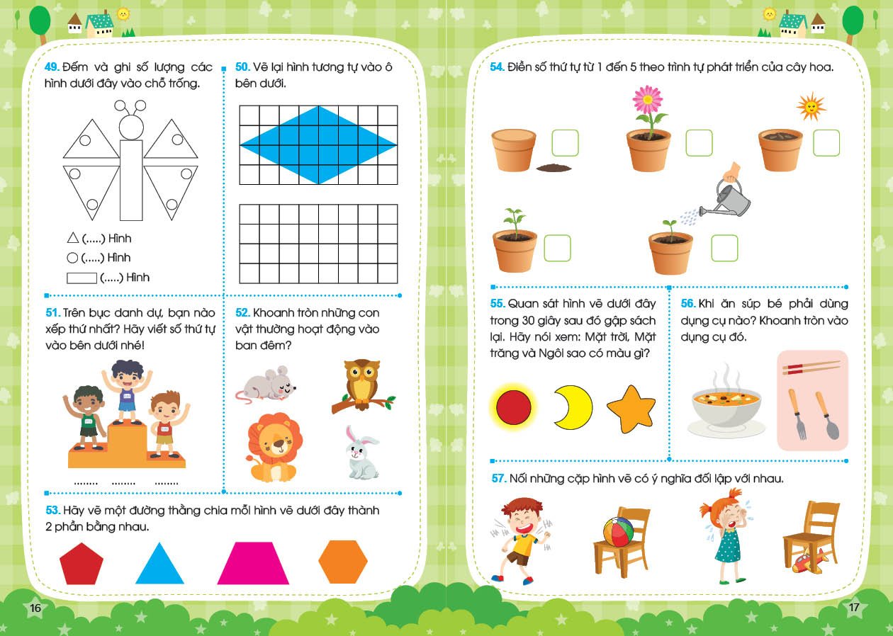 Trong cuốn sách này có hơn 25 bức tranh chưa hoàn chỉnh với các chấm tròn được đánh số thứ tự. Em hãy nối các số đó lại với nhau để hoàn thiện những bức