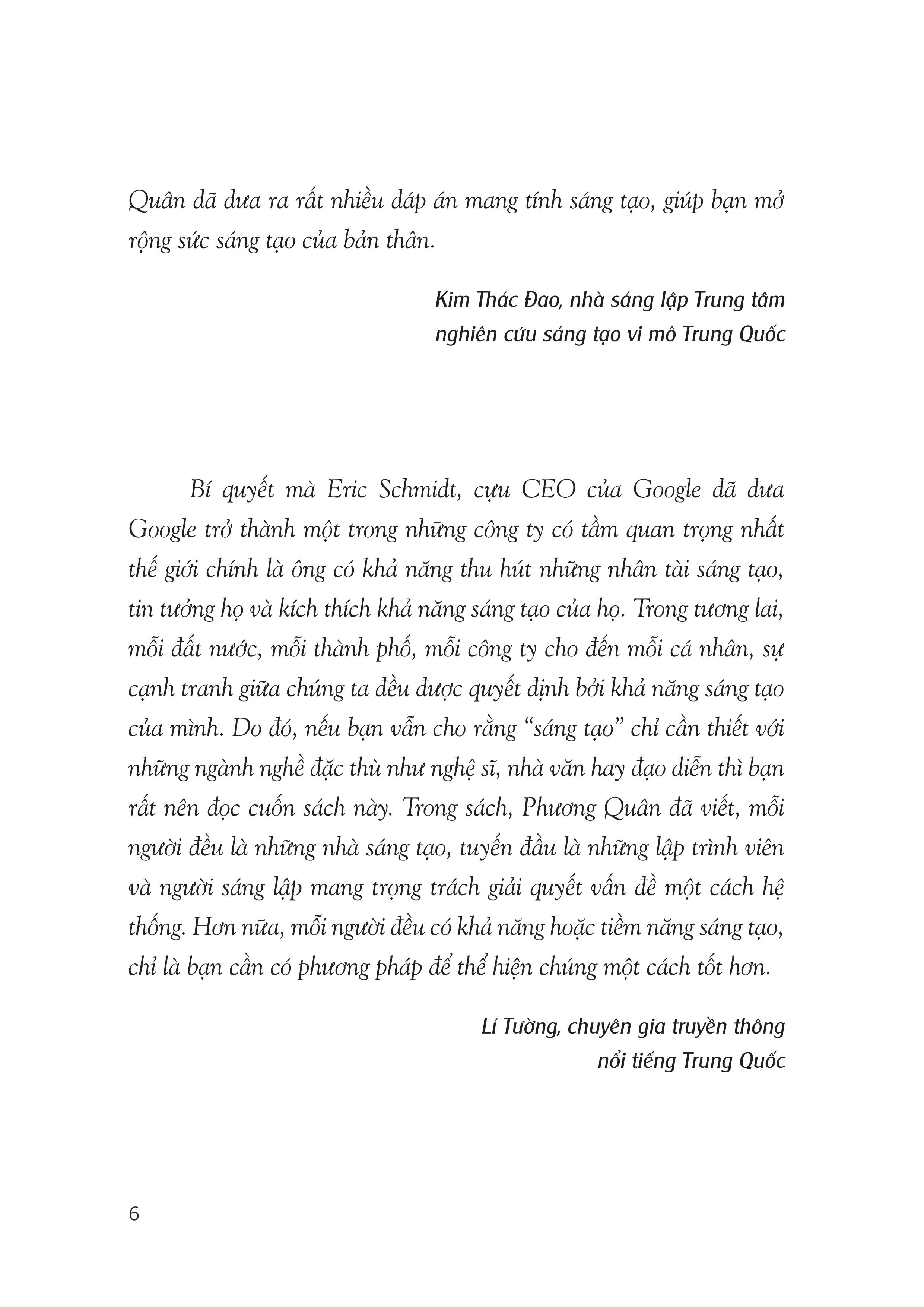 Chúng ta đang sống trong thời đại mà người người đều là nhà sáng tạo. Vậy thì làm thế nào để biến nơi làm việc trở thành nơi sáng tạo? Làm thế nào để mỗi cá nhân đều trở thành nhà sáng tạo thực thụ? Làm thế nào để quản lí sáng tạo một cách hiệu quả?