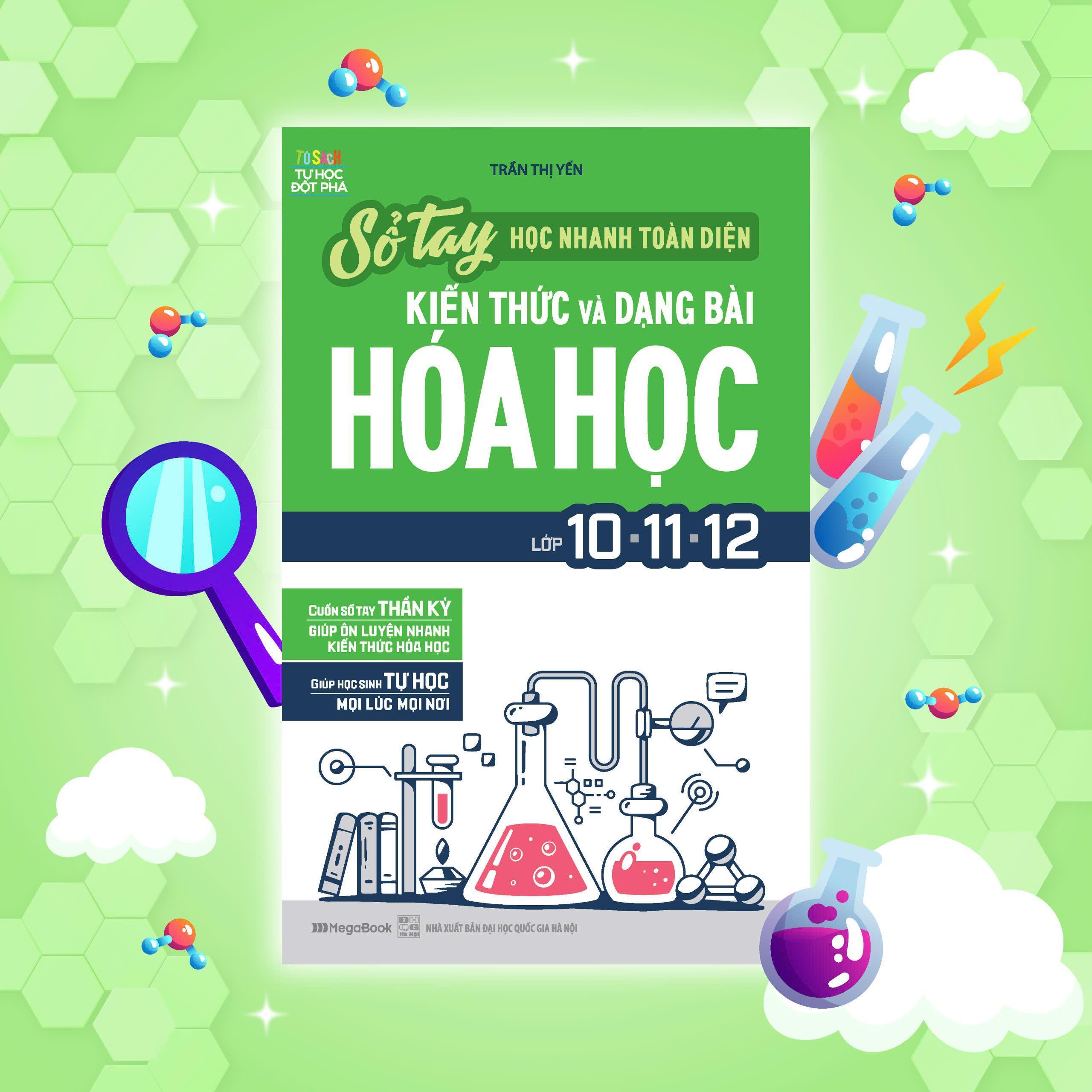 Sổ tay học nhanh toàn diện kiến thức và dạng bài Hóa học lớp 10 – 11 – 12 là cuốn sách tổng hợp toàn bộ kiến thức Hóa học trọng tâm không thể thiếu với các bạn học sinh THPT nếu muốn giành điểm cao môn Hóa Học.