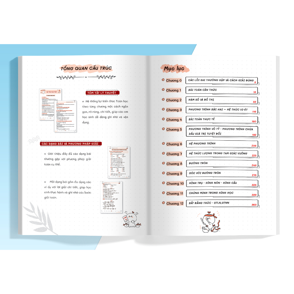 ƯU ĐIỂM CỦA CUỐN SỔ TAY LUYỆN THI VÀO LỚP 10 - MÔN TOÁN 1. Hệ thống kiến thức toán học ngắn gọn, trọng tâm nhất Cuốn sách bao gồm 12 chương kiến thức ngắn gọn nhất,