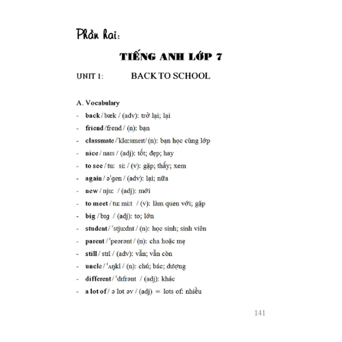 Mua tại TiktokSách ghi lại đầy đủ những từ vựng cơ bản nhất, hệ thống hóa lại toàn bộ chương trình dưới dạng ngắn, gọn dễ hiểu, dễ nhớ, theo đúng chương trình sách giáo khoa hiện hàốn sách gồm 4 phần tương ứng với 4 lớp 6,7,8,9 với các nội dúng bám sát, dể nhớ dể hiểu và sử dụng xuyên suốt quá trình học anh văn trung học cơ sở. Mổi đơn vị bài học với một chủ đề khác nhau và gồm ngữ pháp cụ thể, ví dụ minh họa tương ứng với mổi phần.Đây là một cuốn sách hữu ích cho tất cả bạn đọúc các bạn thành công !