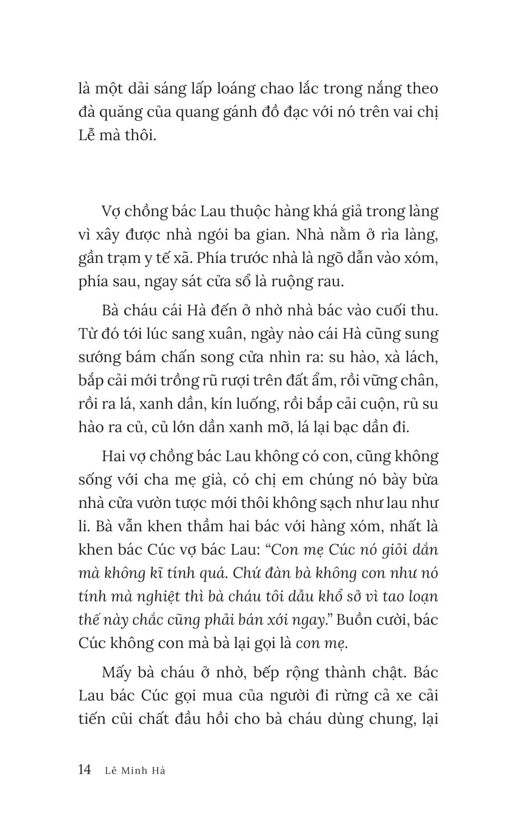Mua tại TiktokSông Còn Chưa Cạn “Ở tuổi bà sáu mươi viết về bà nội sáu mươi tuổi của m.ình, từ đó dựng lại làng quê thời thơ bé không chỉ là sự lựa chọn lối viết của nhà văn mà là kí ức ủ kín sáu mươi năm đến kì chín tới. Sông còn chưa cạn như trái chín thơm từ trong ra, ngon từ ngoài vào. Cảnh quê nhà đoạn nào cũng thích, cái mặc quê nhà câu nào cũng đắt, cái ăn quê nhà chữ nào cũng ngon. Chuyện quê vui vui lắm khi làm người đọc nổi cả da gà. Ví như người bà khăn trắng để trở, tự để tang một m.ình cho cả làng. Thú thật tôi không biết có ai viết về bà m.ình hay được như Lê Minh Hà nữa không…” - NGUYỄN QUANG LẬP “... Là cô giáo dạy Văn giỏi của Hà Nội, đọc văn Lê Minh Hà từ lâu, tôi có lòng tin cô từng là "tín đồ" của Thạch lam và Nam Cao, của Ngọc Giao và Thanh Tịnh. Ở cuốn sách mới, theo thứ tự số 17 này là một trí nhớ tuyệt vời để làm sống lại thật tươi mới những kỉ niệm tuổi thơ trong khoảng cách thời gian hơn nửa thế kỉ. Cùng với khoảng cách thời gian còn là khoảng cách không gian (Berlin - Hà Nội) khiến cho mọi nỗi nhớ càng trở nên lưu luyến hơn, da diết hơn, quyến rũ hơn. Hãy đọc Lê Minh Hà để yêu và yêu thêm Quê hương Việt và Tổ quốc Việt, Văn chương Việt và Ngôn ngữ Việt…” - PHONG LÊ
