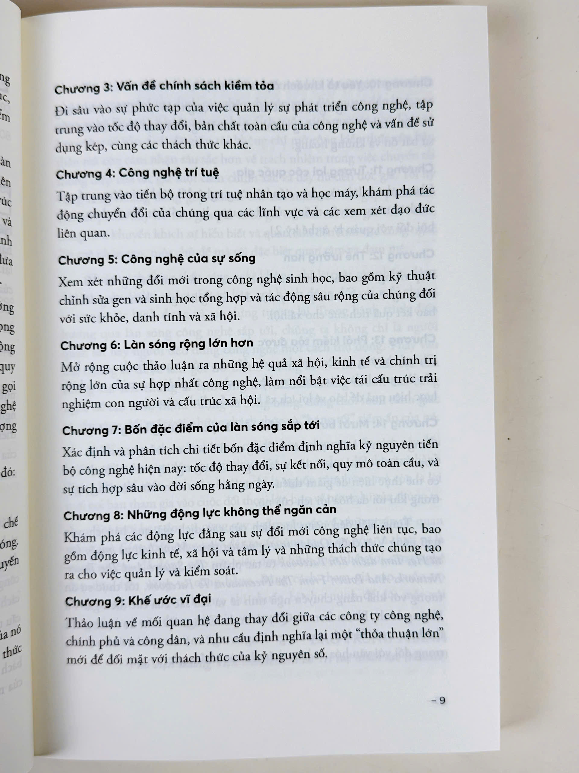 Chúng ta đang tiến tới một ngưỡng quan trọng trong lịch sử loài người. Chẳng bao lâu nữa bạn sẽ sống được bao quanh bởi AI, máy in DNA và máy tính lượng tử, mầm bệnh được thiết kế và vũ khí tự động, trợ lý robot,... Chúng sẽ tổ chức cuộc sống của bạn, điều hành doanh nghiệp của bạn và điều hành các dịch vụ cốt lõi của Chính phủ.