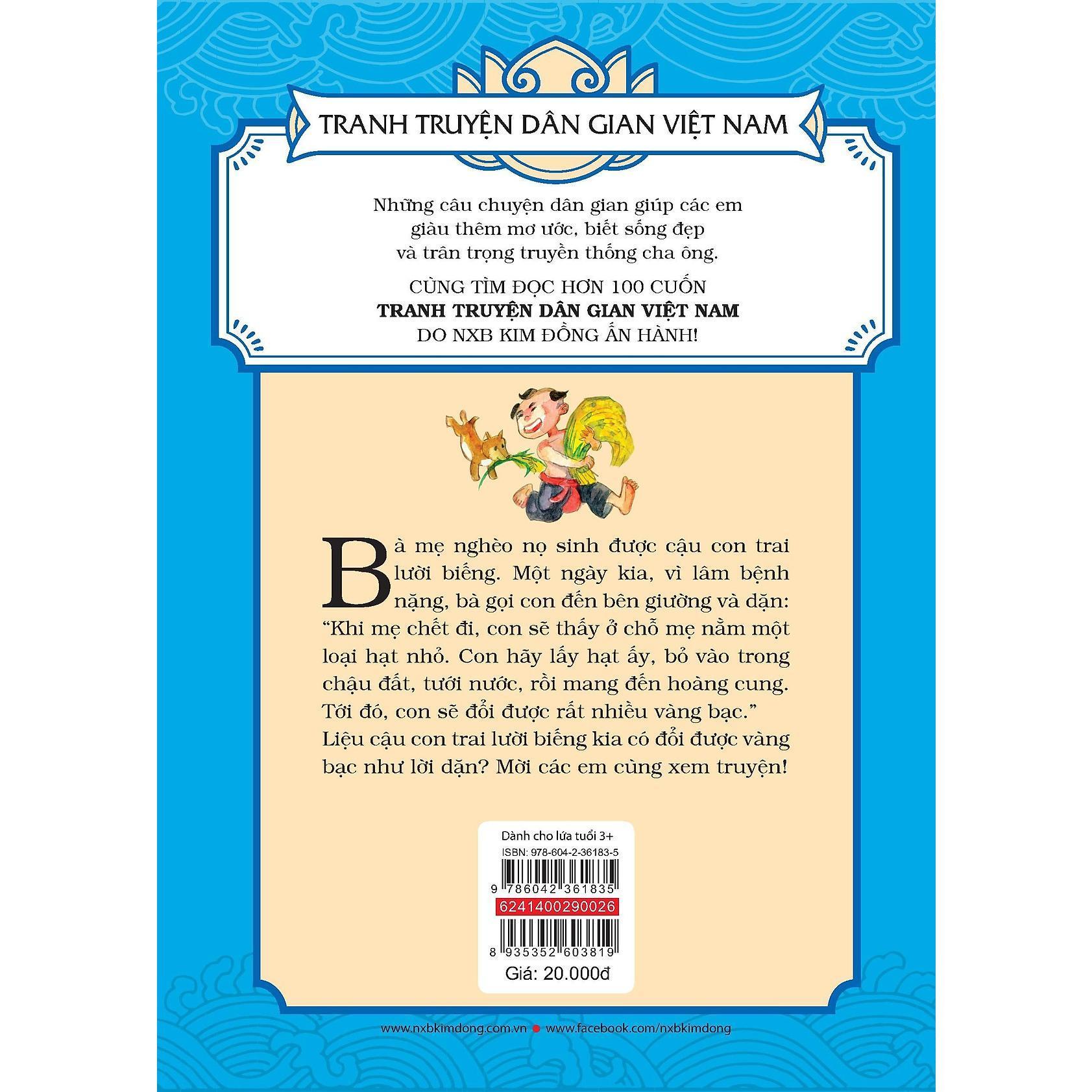 Tranh Truyện Dân Gian Việt Nam - Sự Tích Hạt Thóc Bà mẹ nghèo nọ sinh được cậu con trai lười biếng. Một ngày kia, vì lâm bệnh nặng, bà gọi con đến bên giường và dặn: “Khi mẹ chết đi, con sẽ thấy ở chỗ mẹ nằm một l loại hạt nhỏ. Con hãy lấy hạt ấy, bỏ vào trong chậu đất, tưới nước, rồi mang đến hoàng cung. Tới đó, con sẽ đổi được rất nhiều vàng bạc.” Liệu cậu con trai lười biếng kia có đổi được vàng bạc như lời dặn? Mời các em cùng xem truyện! Những câu chuyện dân gian giúp các em giàu thêm mơ ước, biết sống đẹp và trân trọng truyền thống cha ông. Cùng tìm đọc hơn 100 cuốn Tranh truyện dân gian Việt Nam nhé!