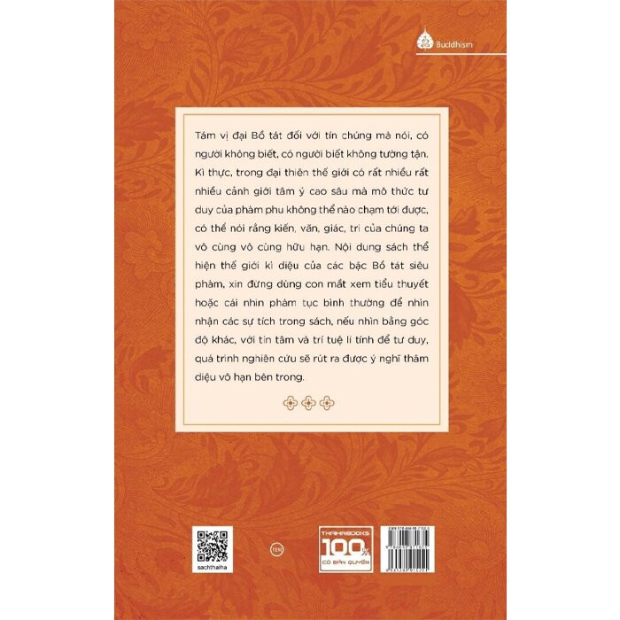Tám vị đại Bồ tát đối với tín chúng mà nói, có người không biết, có người biết không tường tận. Kì thực, trong đại thiên thế giới có rất nhiều rất nhiều cảnh giới tâm ý cao sâu mà mô thức tư duy của phàm phu không thể nào chạm tới được, có thể nói rằng kiến, văn, giác, tri [ Kiến văn giác tri: Thấy nghe hay biết, tiếng gọi chung những tác dụng của tâm thức khi tiếp xúc với các đối tượng bên ngoài. ]của chúng ta vô cùng vô cùng hữu hạn. Nội dung sách thể hiện thế giới kì diệu của các bậc Bồ tát siêu phàm, xin đừng dùng con mắt xem tiểu thuyết hoặc cái nhìn phàm tục bình thường để nhìn nhận các sự tích trong sách, nếu nhìn bằng góc độ khác, với tín tâm và trí tuệ lí tính để tư duy, quá trình nghiên cứu sẽ rút ra được ý nghĩ thâm diệu vô hạn bên trong.