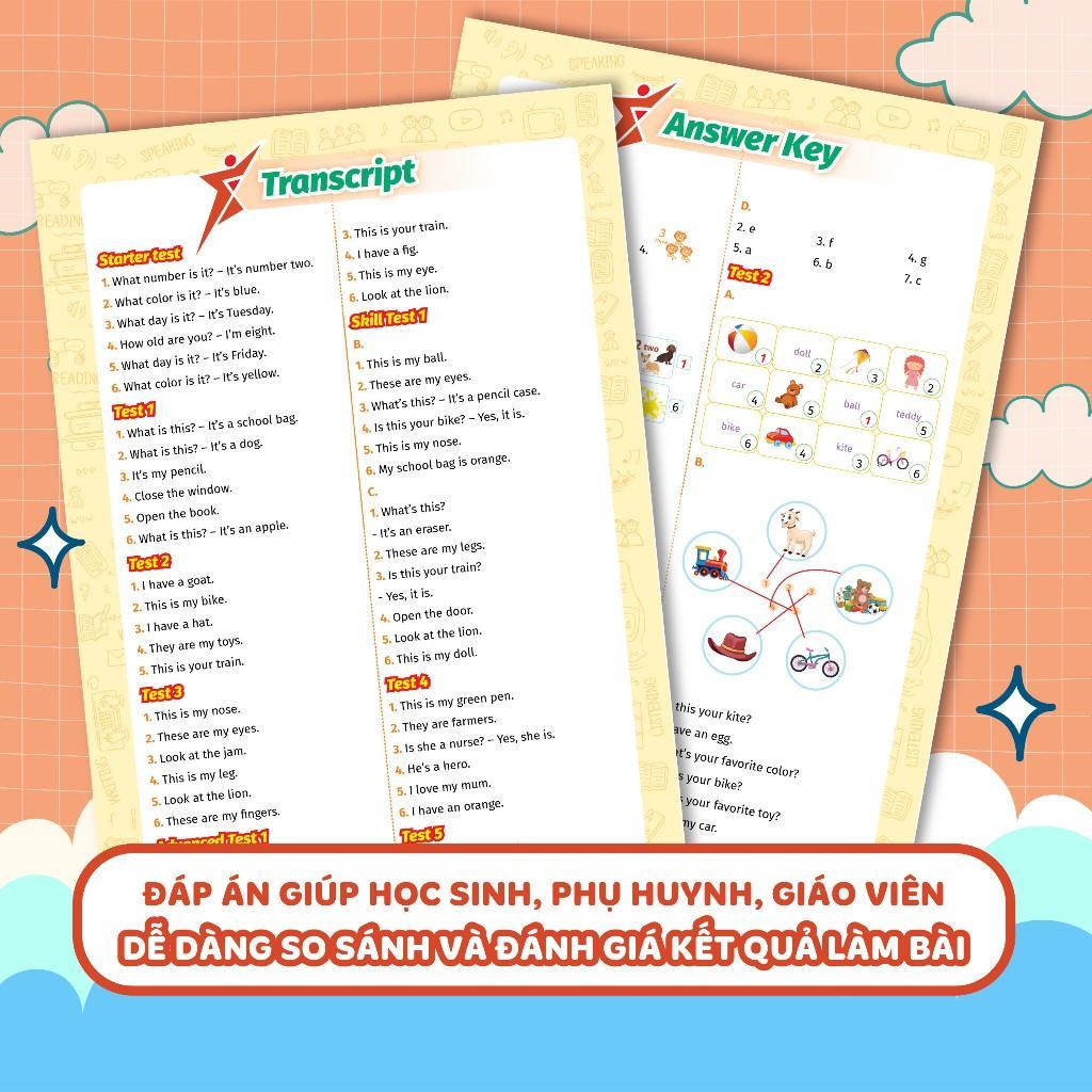Các bài kiểm tra đều có kèm đáp án chi tiết để thầy cô cũng như bố mẹ có thể dựa vào đó để tự chấm điểm các bài kiểm tra, đánh giá được năng lực của con mình