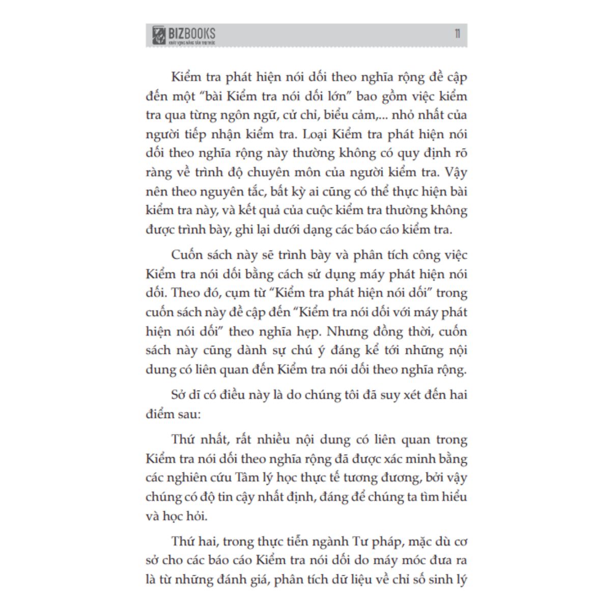 Tác giả chia sẻ những nguyên tắc cơ bản và quy trình kiểm tra nói dối, từ việc sử dụng máy phát hiện nói dối đến các kỹ thuật tâm lý để đánh giá độ tin cậy của lời nói. Cuốn sách không chỉ giải thích chi tiết về các chỉ số sinh lý được ghi lại trong quá trình kiểm tra, mà còn đưa ra những phân tích về tâm lý và hành vi của người nói dối.