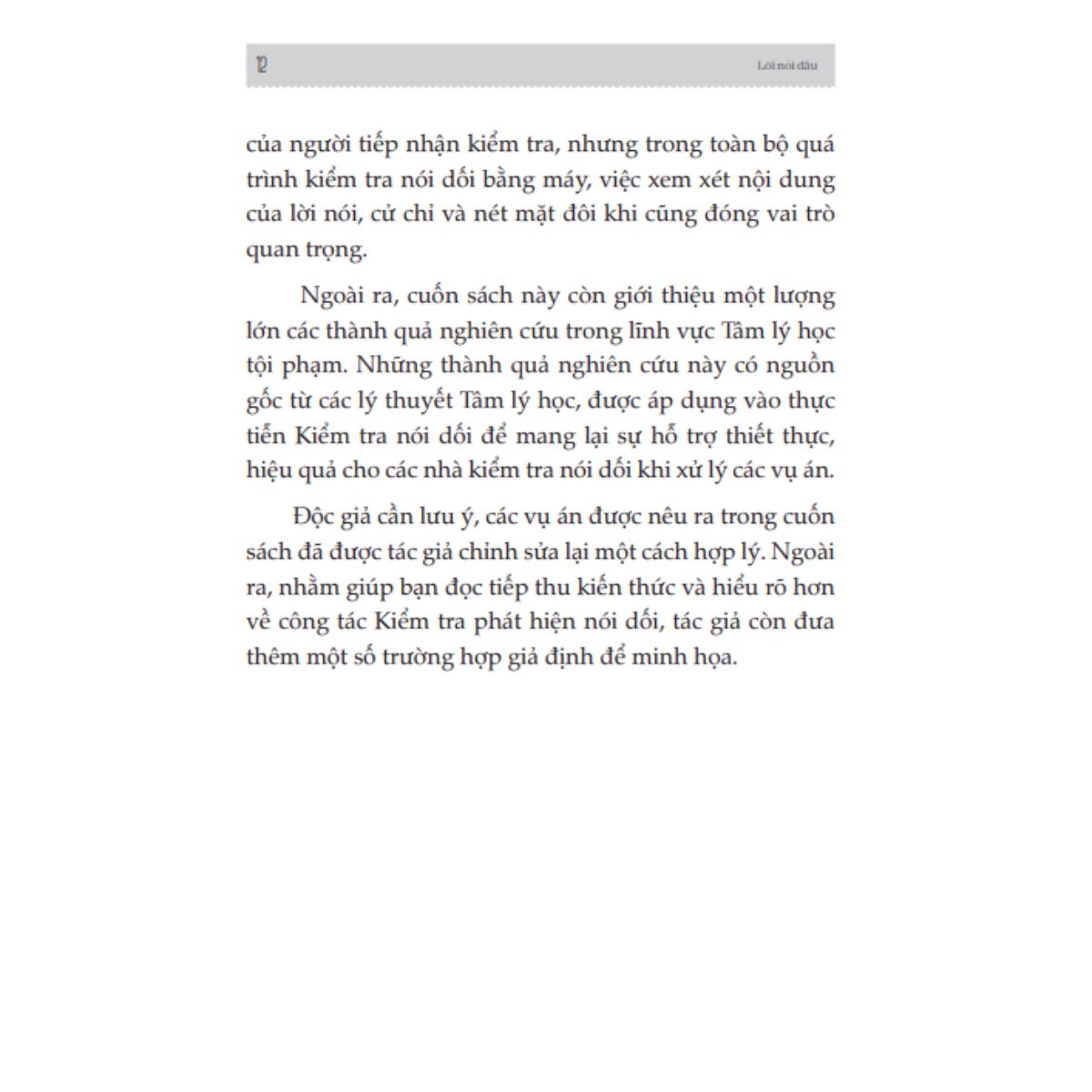 "Tâm lý học tội phạm - Nghệ thuật phát hiện lời nói dối" còn dẫn dắt người đọc qua nhiều câu chuyện và vụ án thực tế, minh họa cách mà các chuyên gia kiểm tra nói dối xử lý và giải quyết những tình huống phức tạp. Cuốn sách không chỉ giúp bạn hiểu rõ hơn về cách thức hoạt động của máy phát hiện nói dối mà còn cung cấp những kỹ năng thực tiễn để nhận biết và đối phó với lời nói dối trong cuộc sống hằng ngày.