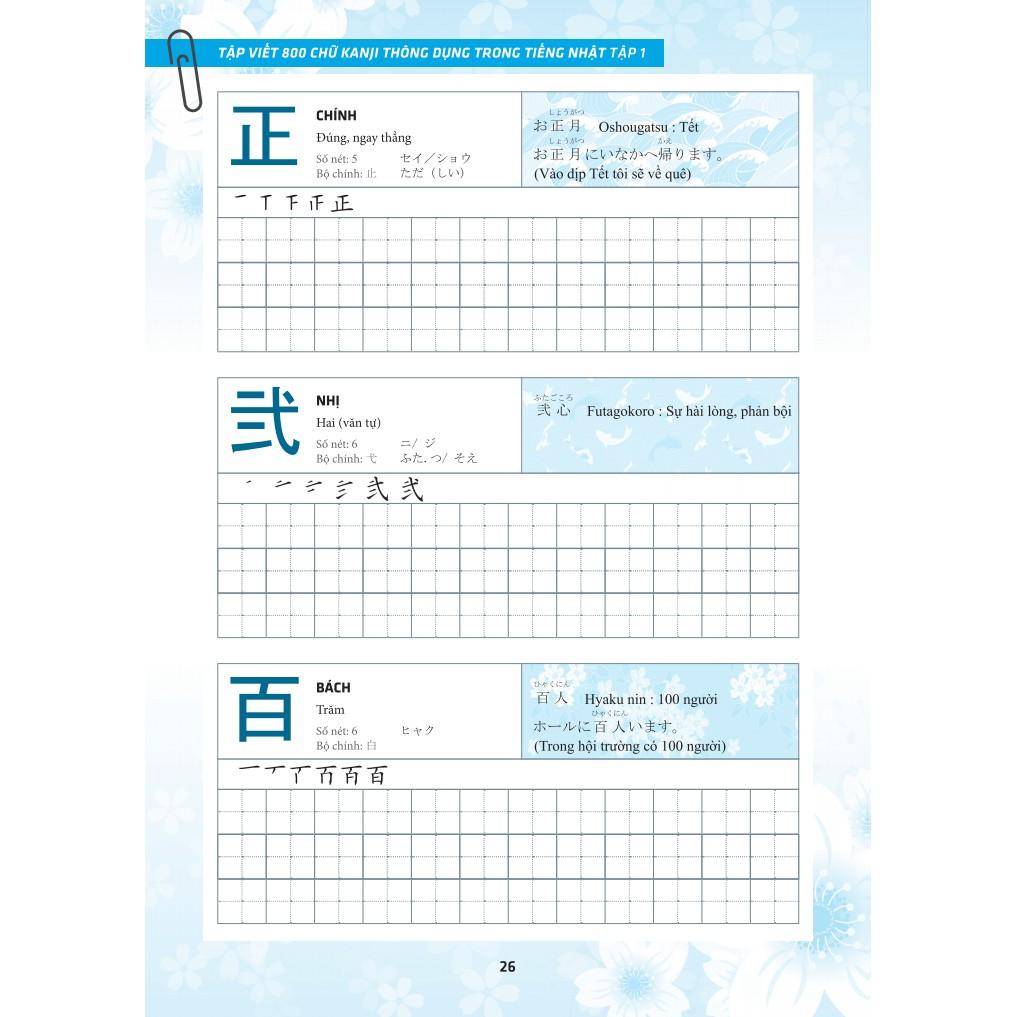 Tập viết chữ KANJI trong tiếng Nhật dành cho người mới bắt đầu Một là hướng đi của nét bút: Hai là thứ tự trước sau trong khi viết các nét chữ: ======== NXB: NXB
