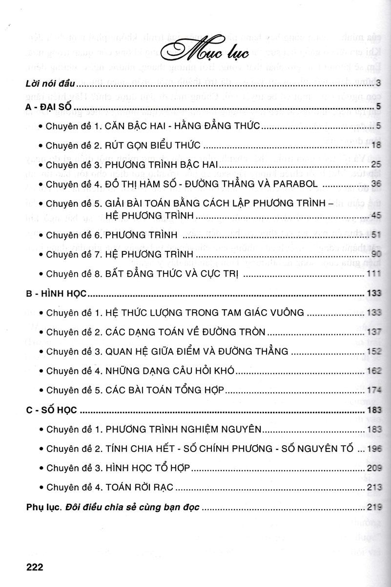 Các chuyên đề Đại số - Hình học - Số học. Những mảng kiến thức trọng tâm (được soạn theo cấu trúc đề thi mới nhất của BGD&ĐT) sẽ được hệ thống như sau: