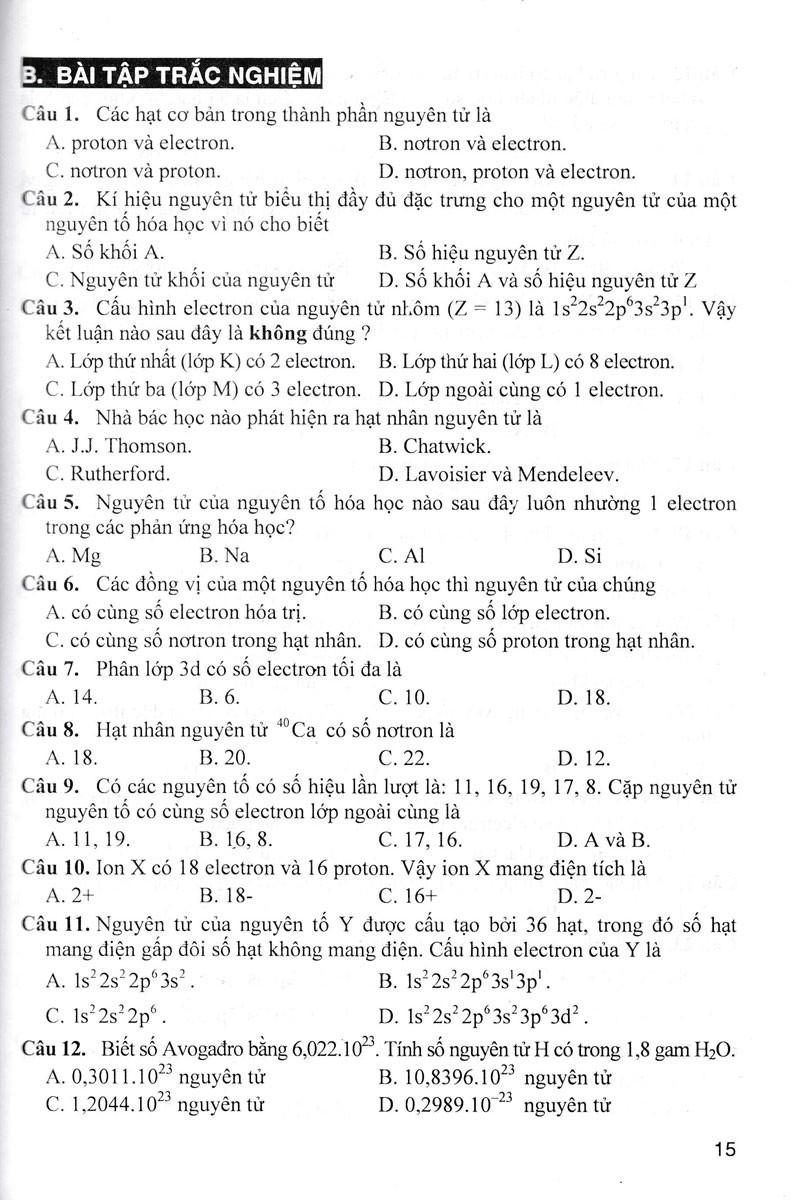B. BÀI TẬP TRẮC NGHIỆM - Cung cấp hệ thống bài tập trắc nghiệm phong phú, bao quát toàn bộ nội dung chương trình. Để giải được những bài tập này học sinh phải vận dụng tốt phần tự học lí thuyết.
