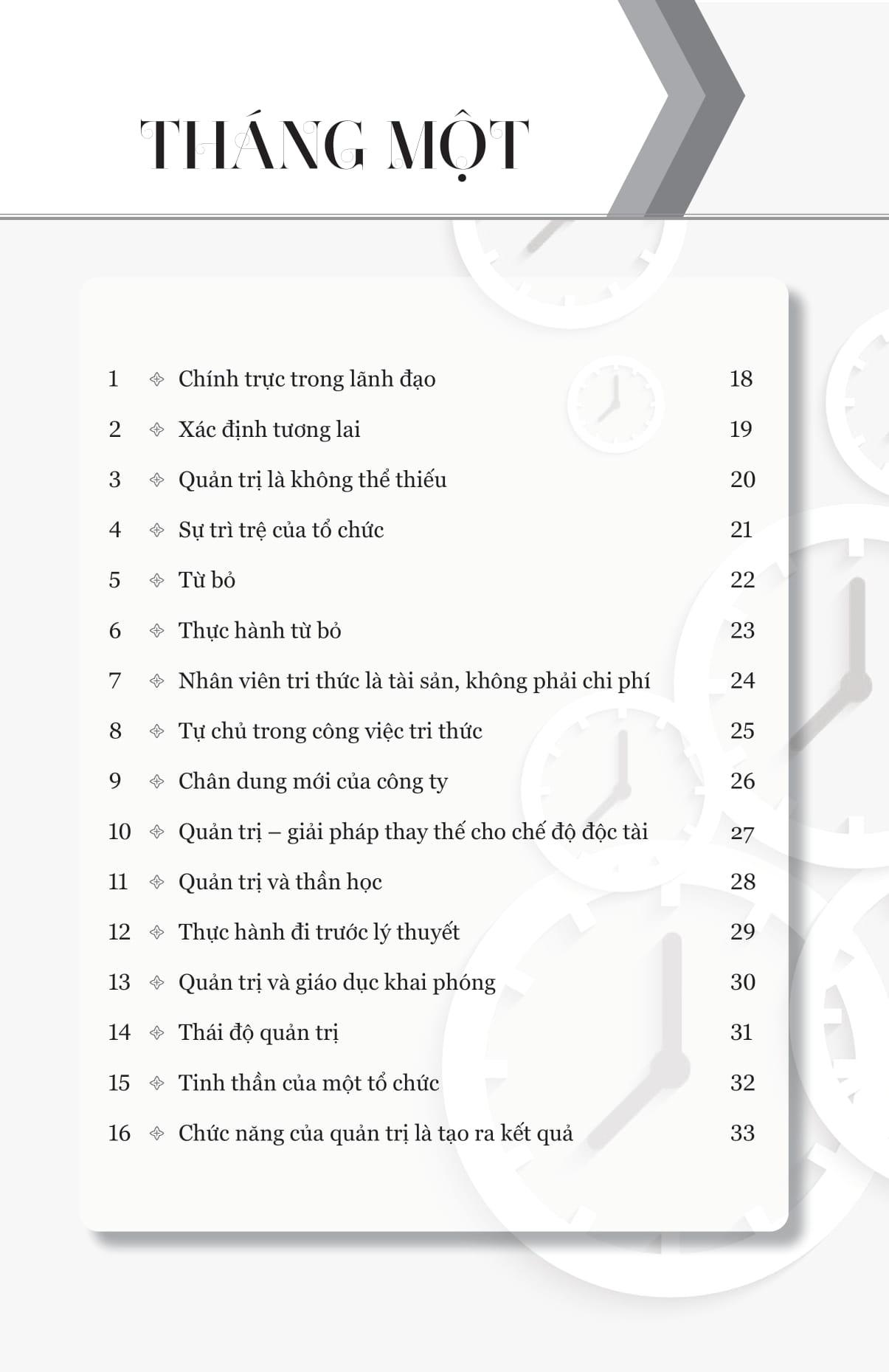 Cuốn sách được trình bày dưới dạng có tổ chức – bao gồm 366 bài đọc, mỗi bài đề cập tới một chủ đề cho từng ngày trong năm, kể cả ngày 29 tháng Hai, trải rộng qua nhiều lĩnh vực công việc và những trải nghiệm của Drucker: từ quản lý thời gian; việc đưa ra quyết định; nhân lực đang thay đổi; đến quản trị, kinh doanh và nền kinh tế thế giới, sự đổi mới và khởi nghiệp,…. Giữa vô vàn áp lực của cuộc sống hàng ngày, The Daily Drucker như một nguồn cảm hứng và 'kim chỉ nam' để chinh phục những thách thức mà chúng ta phải đối mặt.
