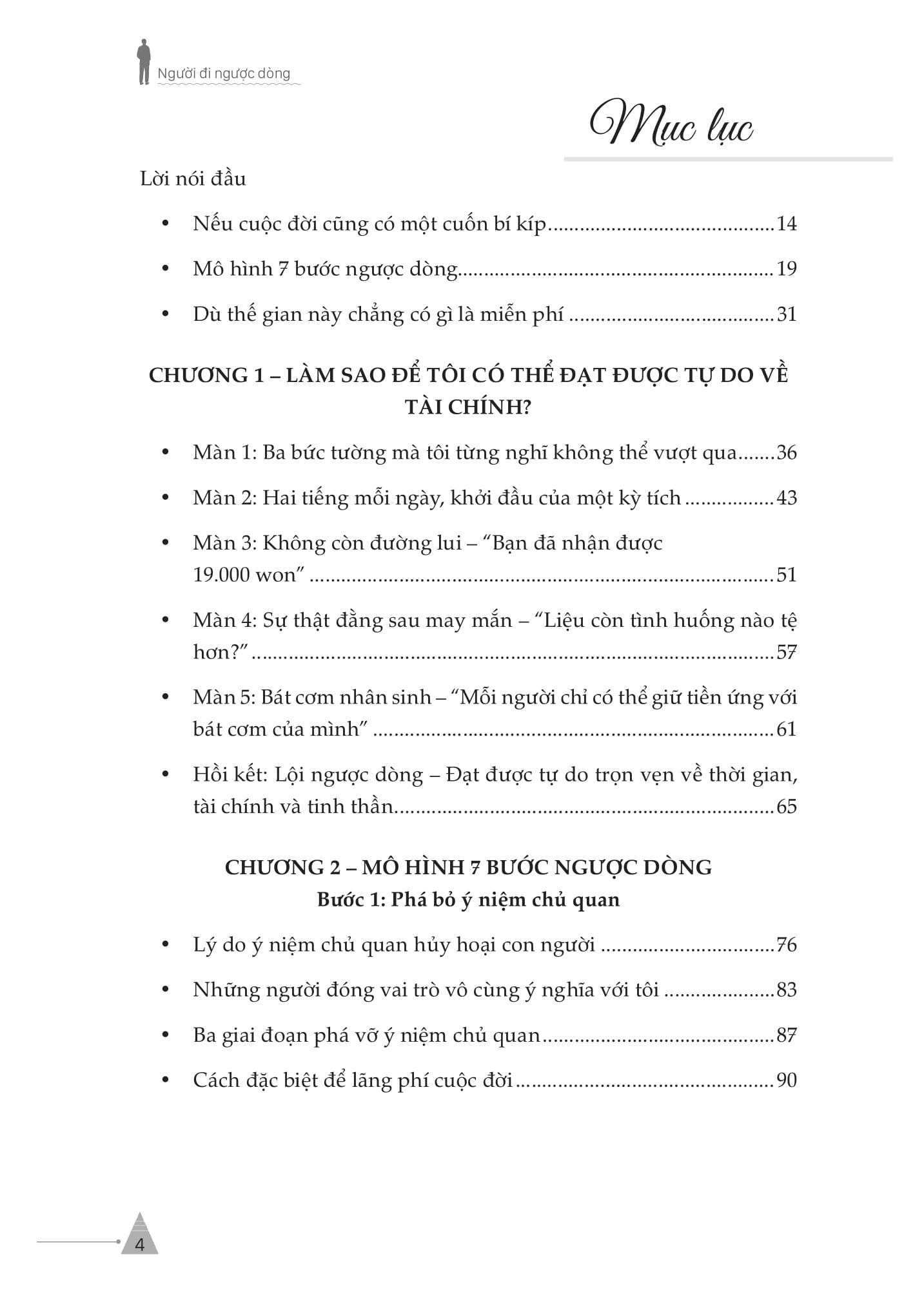 Cuốn sách được chia thành 8 chương chính, với trọng tâm là “Mô hình 7 bước ngược dòng” – một hệ thống tư duy dẫn dắt người đọc từng bước thoát khỏi rào cản tâm lý, di truyền và xã hội để kiến tạo tự do thực sự.