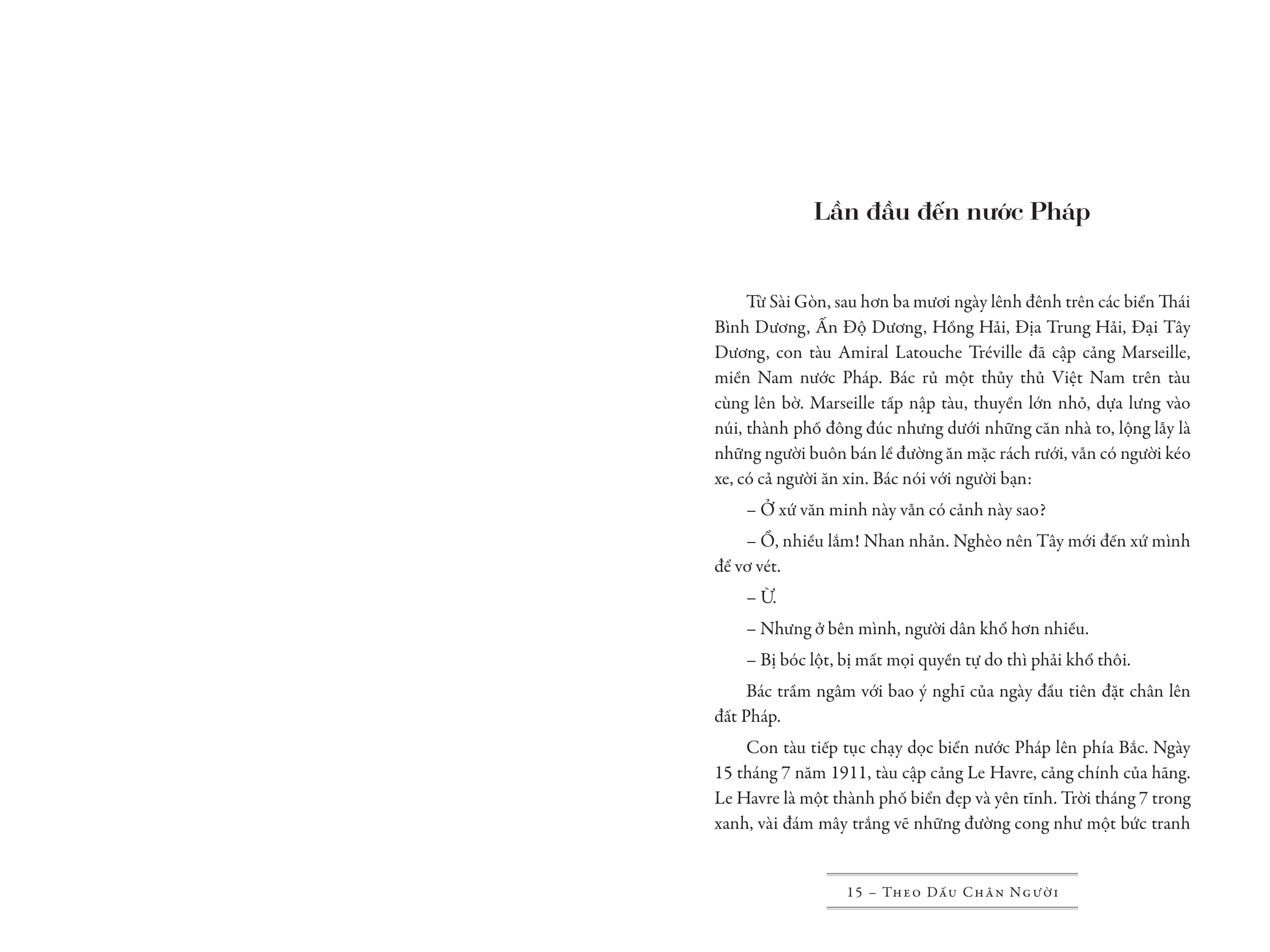“Với tất cả tình cảm cao cả với Bác, với sự thôi thúc của một nhà văn, tôi đã xây dựng nên tập truyện kí “Theo dấu chân Người”. Hi vọng sẽ mang đến cho bạn đọc những thông tin, tư liệu bổ ích và qua những trang sách này người đọc sẽ hiểu thêm, sẽ yêu, sẽ học tập phong cách, ý chí cao cả của Bác kính yêu.” - GS. TS. nhà văn TRÌNH QUANG PHÚ