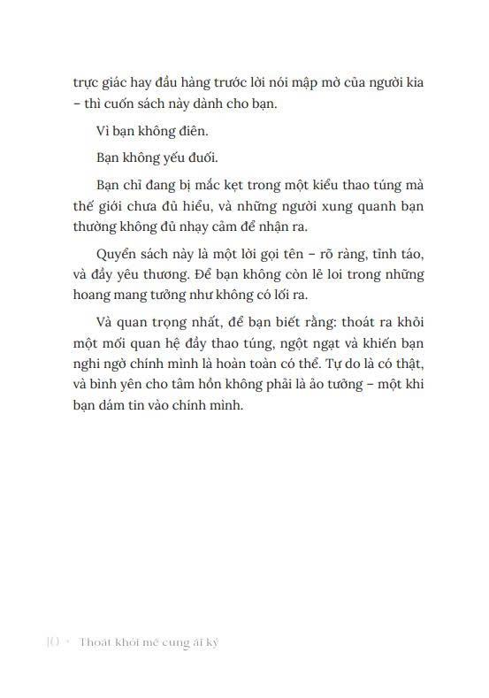 Nếu bạn từng cảm thấy bị tổn thương mà không hiểu vì sao, từng bị phủ nhận cảm xúc, từng sống trong hoang mang giữa đúng – sai, hoặc từng nghi ngờ chính m.ình trong một mối quan hệ tưởng là thân thiết, thì cuốn sách này dành cho bạn.