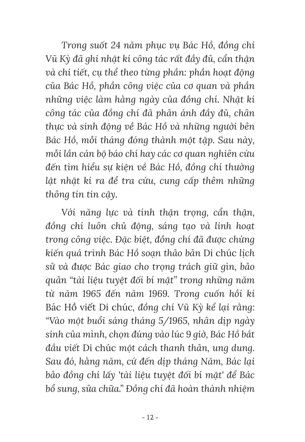 Kỉ niệm 55 ngày mất của Chủ tịch Hồ Chí Minh (1969-2024), thân gửi tới bạn đọc cuốn sách Thư kí Bác Hồ kể chuyện – một phần di sản không hề nhỏ về Bác Hồ mà đồng chí Vũ Kỳ đã lưu giữ và mong muốn trao gửi tới nhiều thế hệ sau.