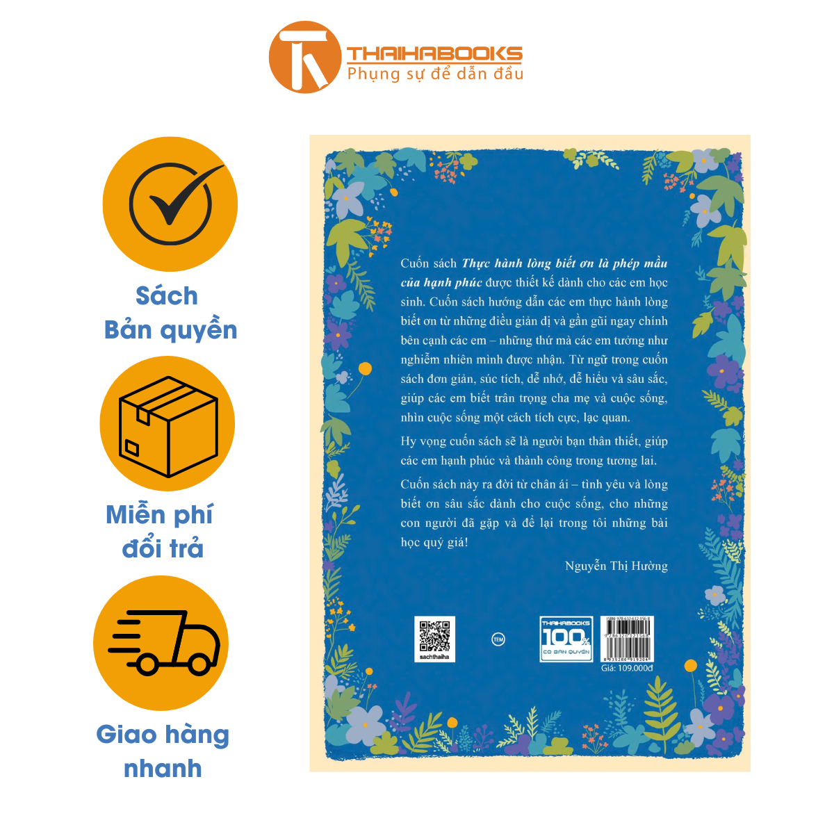 "Thực hành lòng biết ơn là phép màu của hạnh phúc" là món quà ý nghĩa dành tặng các em học sinh, các bậc cha mẹ và thầy cô giáo. Cuốn sách không chỉ giúp các em hình thành thói quen biết ơn, mà còn bồi dưỡng tâm hồn, nuôi dưỡng lòng trắc ẩn, và kiến tạo một cuộc sống hạnh phúc, tích cực.