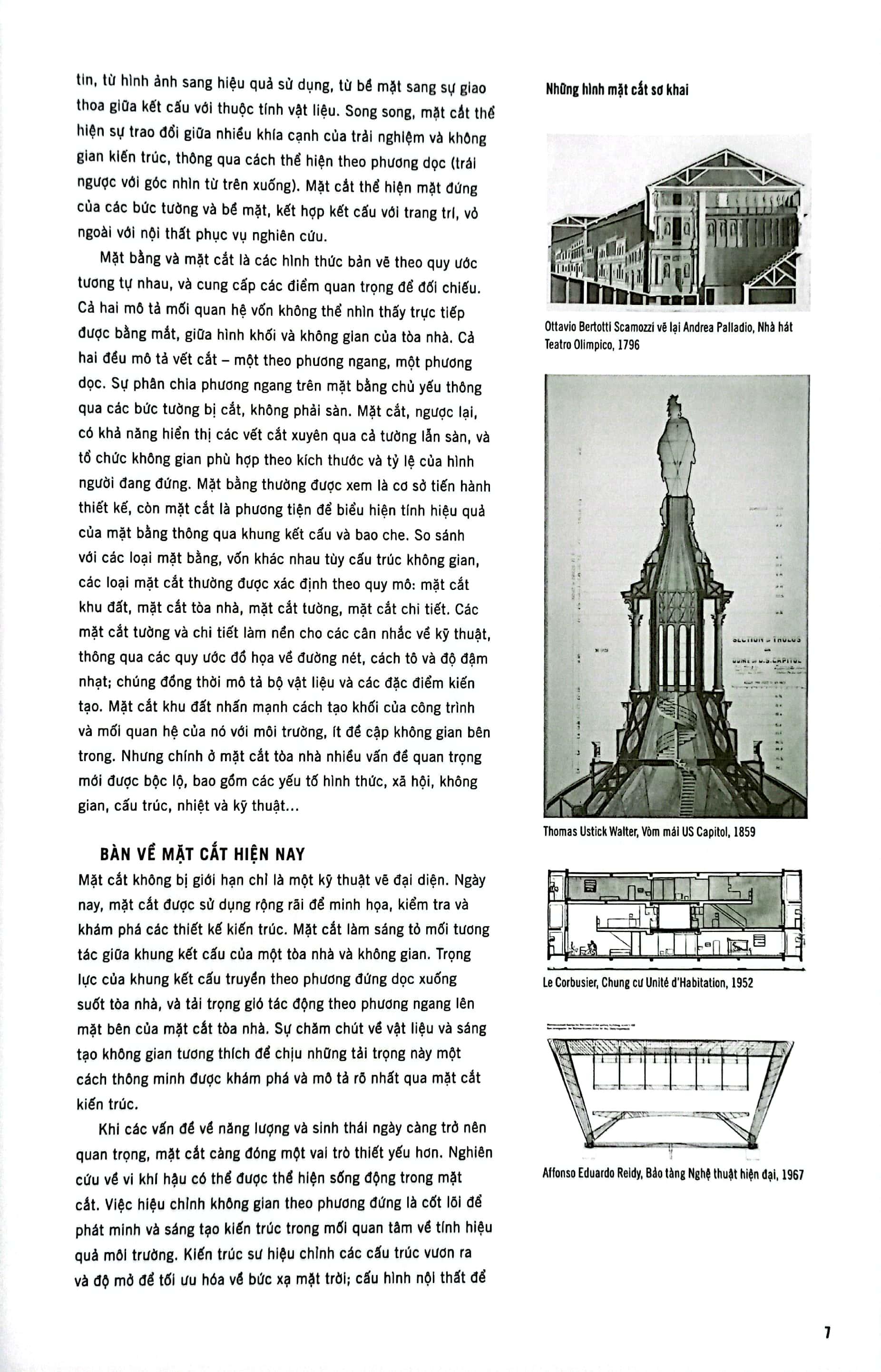 Nhiều cách sử dụng các loại mặt cắt đơn lẻ hoặc kết hợp được cung cấp trong quyển sách, từ đó, giúp người đọc nắm vững những nguyên tắc thiết kế kiến trúc. Mỗi loại mặt cắt bộc lộ những khả năng riêng biệt, từ sự khai thác ý tưởng chung của không gian đến việc thử nghiệm tính hiệu quả về nhiệt, từ việc thiết lập phân chia không gian đến sự tăng cường tương tác giữa bên trong và bên ngoài.