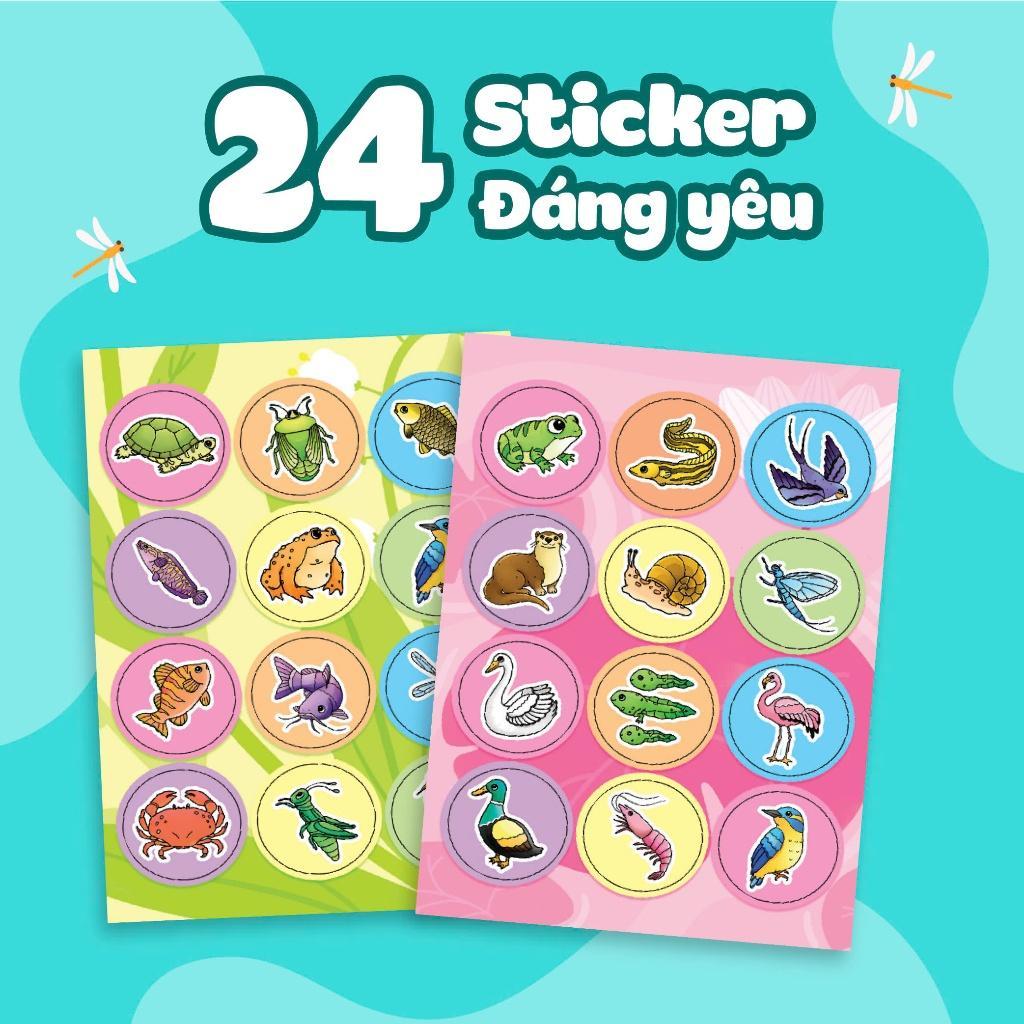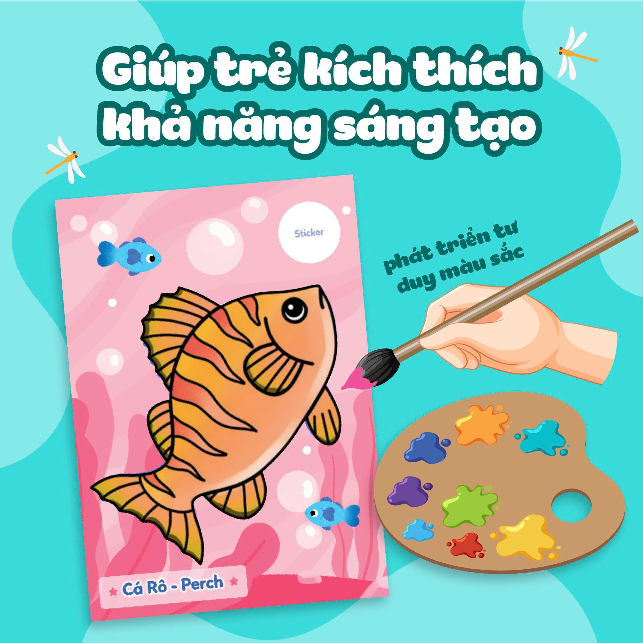 Bộ sách "Tô màu khám phá" gồm 5 cuốn: "Hồ nước trong xanh," "Nông trại vui vẻ," "Thành phố nhộn nhịp," "Thủy cung bí ẩn," và "Vườn thú ngộ nghĩnh. Sách phù hợp với trẻ lứa tuổi từ 3 đến 6 tuổi. Với những cuốn sách này các bé không chỉ thỏa sức tô màu mà còn giúp các em học hỏi và khám phá thế giới muôn màu sắc. Được thiết kế với màu sắc sinh động, sách kích thích sự sáng tạo của trẻ, đồng thời đi kèm với sticker động vật, giúp các em hình dung rõ nét về các loài vật. Hơn nữa, sách còn cung cấp tên gọi bằng tiếng Việt và tiếng Anh cho từng con vật theo chủ đề, giúp trẻ mở rộng hiểu biết về thế giới và học thêm một ngôn ngữ mới - tiếng Anh.