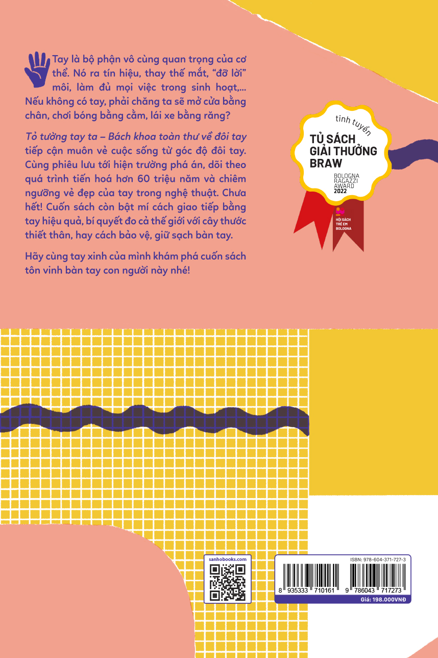 Tỏ tường tay ta – Bách khoa toàn thư về đôi tay tiếp cận muôn vẻ cuộc sống từ góc độ đôi tay. Cùng phiêu lưu tới hiện trường phá án, dõi theo quá trình tiến hoá hơn 60 triệu năm và chiêm ngưỡng vẻ đẹp của tay trong nghệ thuật. Chưa hết! Cuốn sách còn bật mí cách giao tiếp bằng tay hiệu quả, bí quyết đo cả thế giới với cây thước thiết thân, hay cách bảo vệ và giữ sạch bàn tay.
