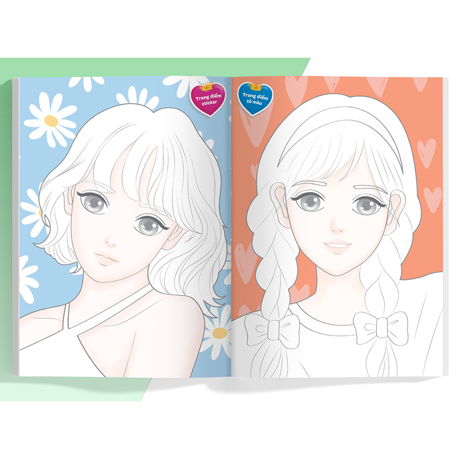 Bộ sách trang điểm công chúa Hàn Quốc gồm có 2 cuốn, mỗi cuốn có 24 hình công chúa giúp các bé thỏa sức sáng tạo, make up. Các bé có thể trang điểm cho các nàng công chúa với phong cách khác nhau: vẽ lông mày, đeo lens, tô son, đeo khuyên tai, dây chuyề làm tất cả mọi thứ để các nàng công chúa xinh hơn.