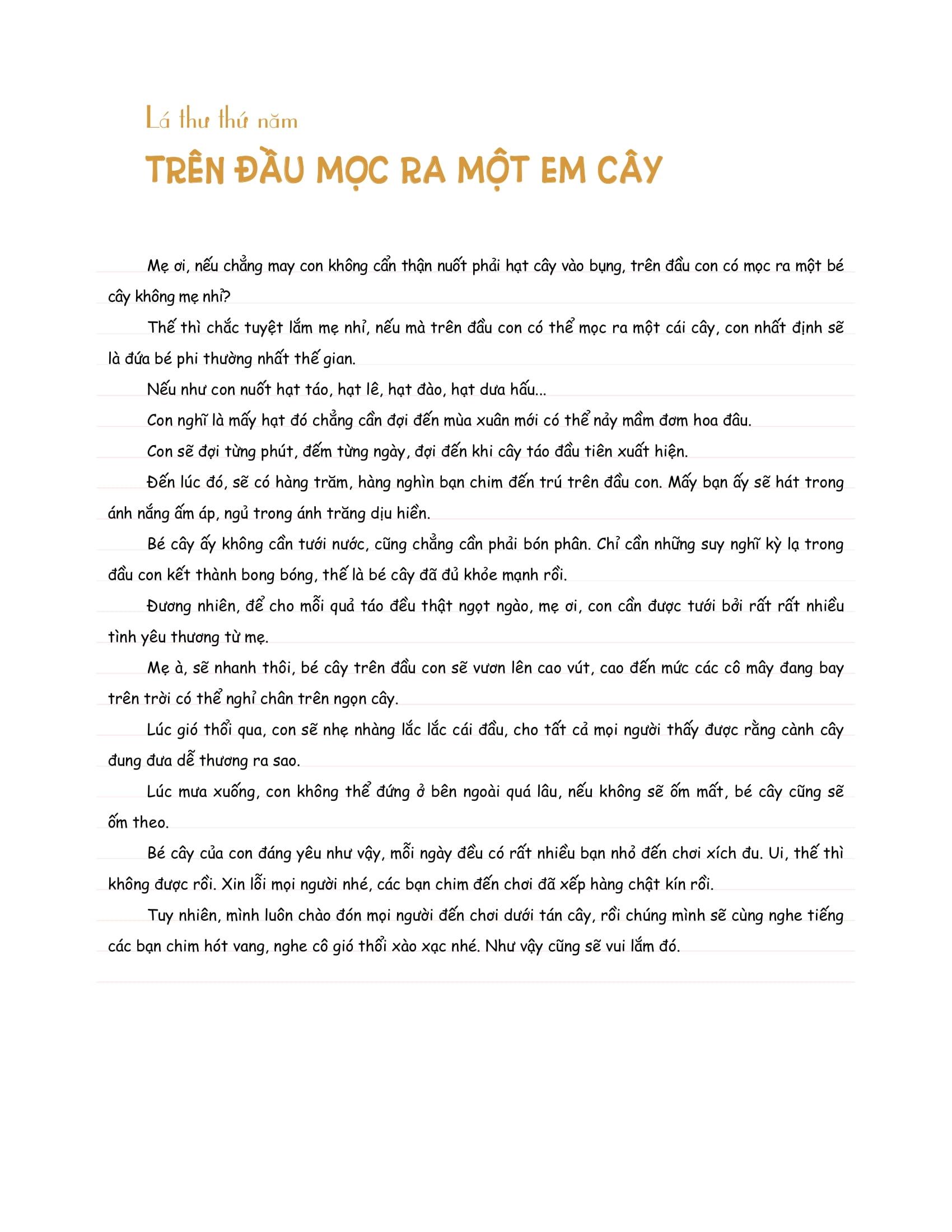 Lá thư thứ năm: Trên đầu mọc ra một em cây