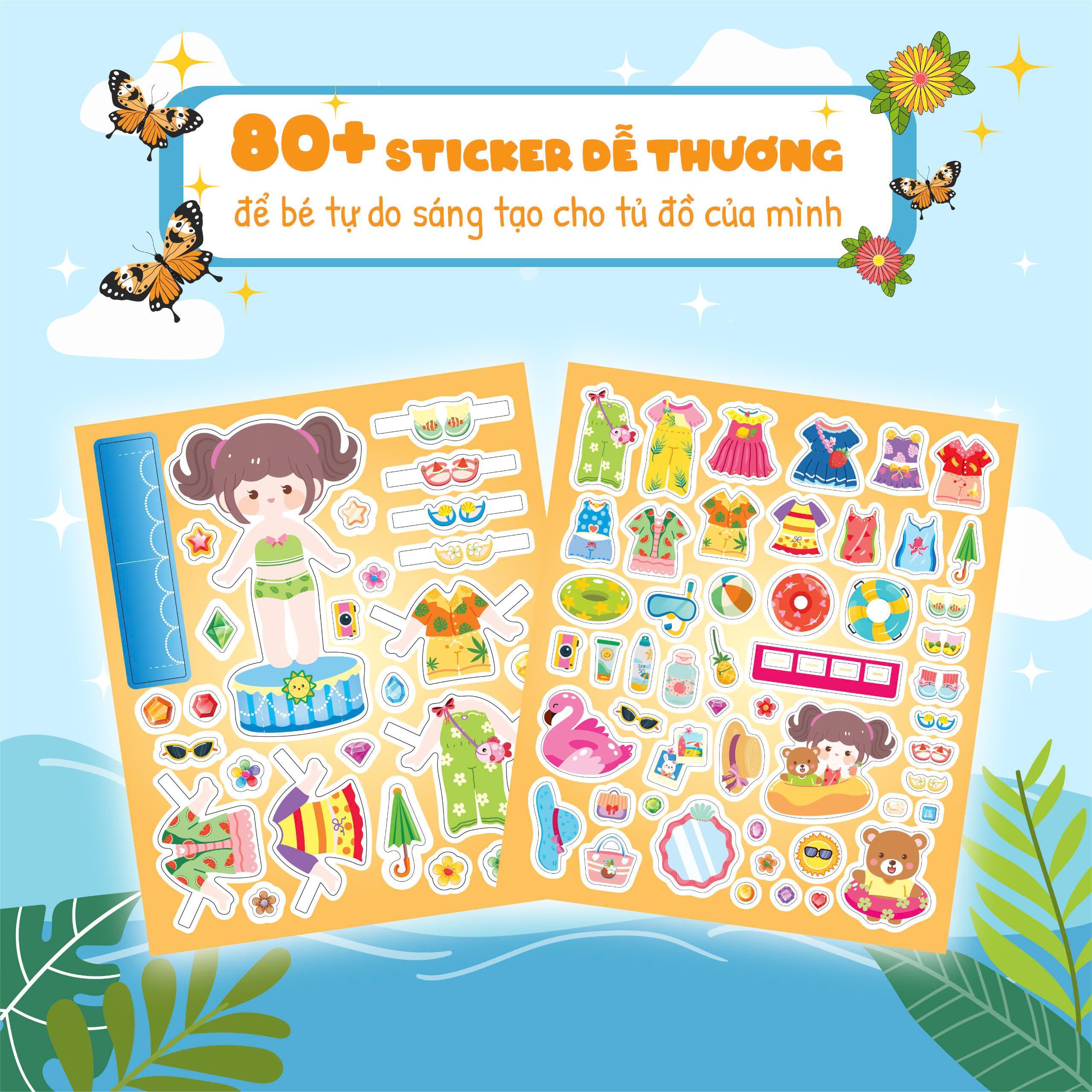 Sticker dễ thương: Gồm nhiều trang phục và phụ kiện phong phú, giúp bé thoải mái sáng tạo.