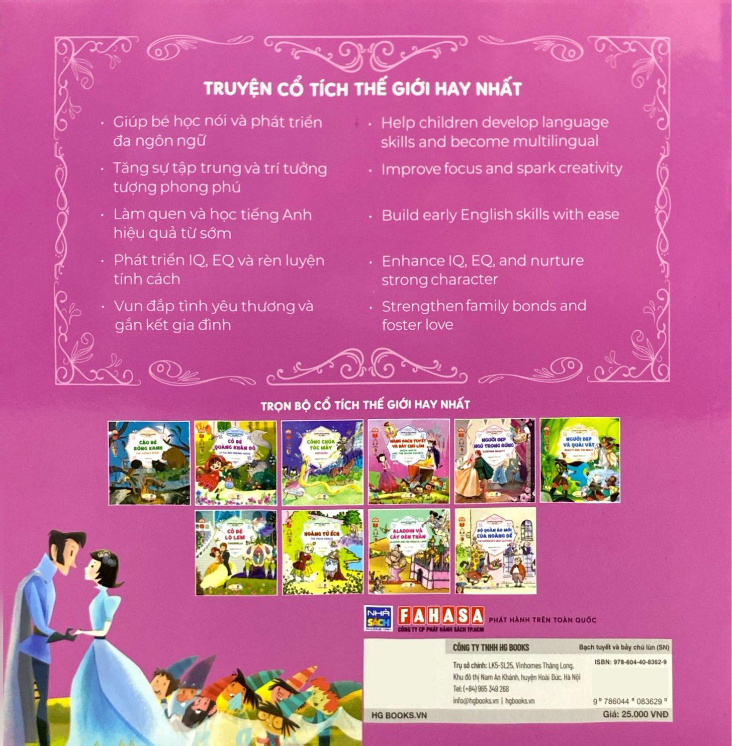 Bộ sách "Truyện Cổ Tích Nổi Tiếng Thế Giới" (10 cuốn) – Bản song ngữ Việt - Anh sẽ đưa bé vào thế giới nhiệm màu của những nàng công chúa, chàng hoàng tử, những điều kỳ diệu và bài học nhân văn sâu sắc.