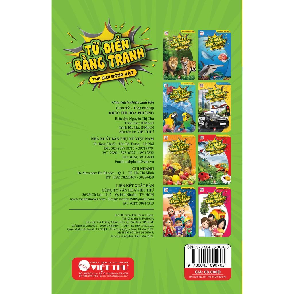 Cuốn sách “Từ điển bằng tranh – Thế giới động vật” được thiết kế dưới dạng từ điển bằng tranh (song ngữ Việt - Anh) tập hợp rất nhiều các ảnh chụp thật, rõ nét và ấn tượng về các loài vật sẽ giúp bé làm quen với thế giới xung quanh và có những từ vựng đầu tiên làm nền tảng cho giao tiếp và tư duy.