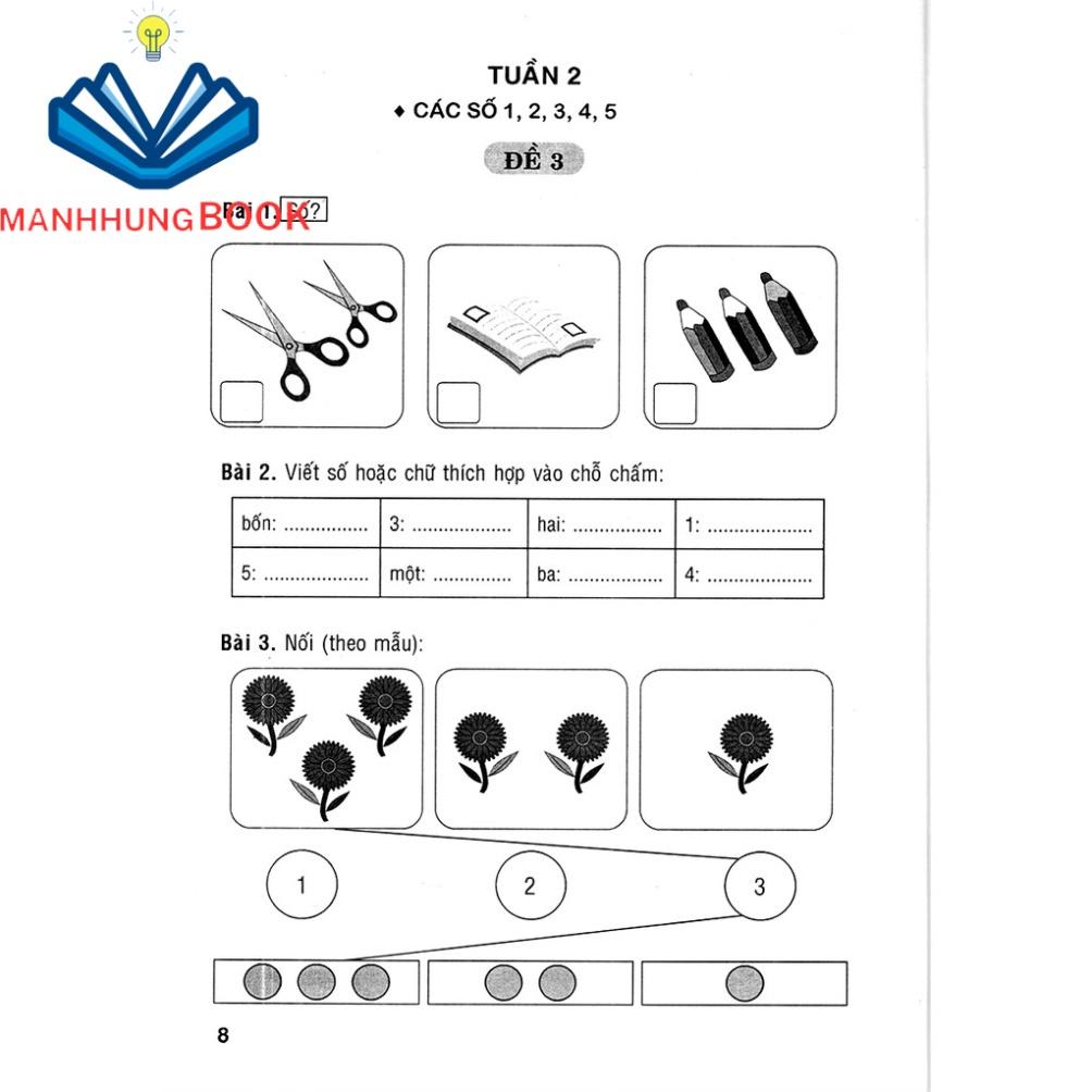- Phần 1: Bộ đề ôn tập và tự kiểm tra. Phần này gồm hệ thống các đề ôn luyện được trình bày theo từng phần, mỗi tuần có 2 đề, mỗi đề có 8 bài. Các bài tập trong mỗi đề được chọn lọc theo các kiến thức và kĩ năng mà các em được học trong tuần đó, cùng một số kiến thức có liên quan trong những tuần trước. Đặc biệt, cuối mỗi đề có một số bài nâng cao giúp các em làm quen với những dạng toán khó. Trong mỗi cuốn có 5 đề tự kiểm tra giữa kì và 5 đề tự kiểm tra cuối kì, giúp các em tham khảo và tự làm bài kiểm tra để chuẩn bị tốt cho các bài thi giữa kì và cuối kì trên lớp.