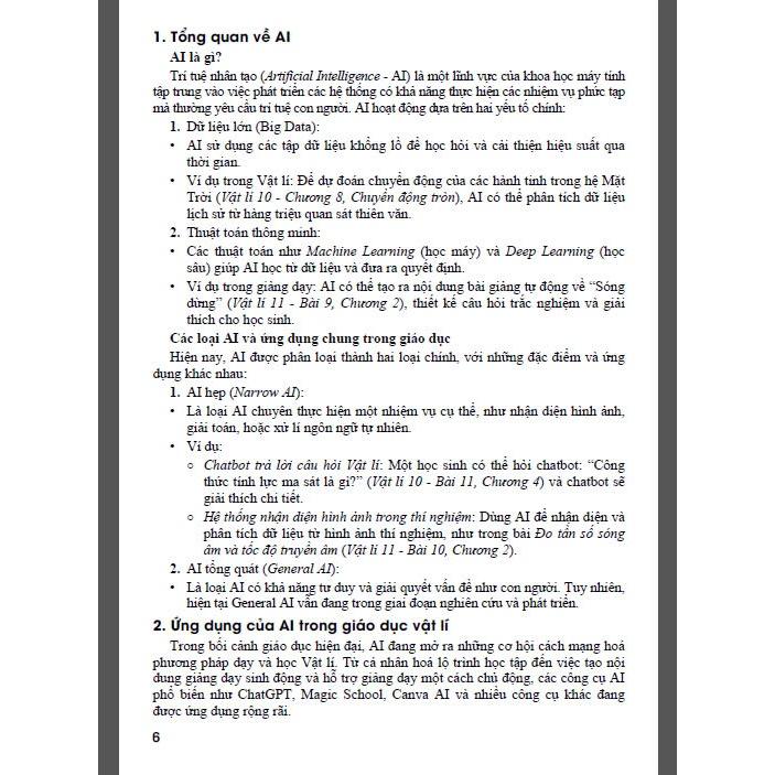Chúng tôi tin rằng, với sự đồng hành của cuốn sách này, bạn sẽ nhận ra rằng AI không chỉ là một công cụ mà còn là một người bạn đồng hành đầy tiềm năng, giúp bạn mang lại những trải nghiệm học tập tuyệt vời cho học sinh của mình. Hãy cùng chúng tôi bước vào hành trình khám phá và ứng dụng AI trong dạy học Vật lí – một hành trình mà tri thức và công nghệ hòa quyện để xây dựng tương lai giáo dục!