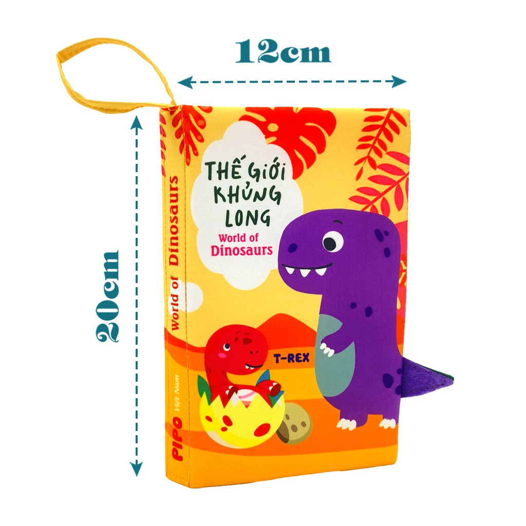 Sách Vải Tương Tác Cho Bé Đoán Đuôi Con Vật - Thế Giới Khủng Long GIỚI THIỆU SẢN PHẨM: Sách vải cho bé PiPo tương tác đoán đuôi con vật - Sách vải song ngữ Thế giới khủng long Sách vải cho bé cung cấp hình ảnh và tên gọi các loài khủng long cổ xưa mà còn cho bé cảm giác được chạm vào đuôi các loài khủng long. Ba mẹ và bé cùng đoán đuôi các loài khủng long, cùng thao tác các chi tiết tạo tiếng kêu trên sách. THÔNG TIN SẢN PHẨM