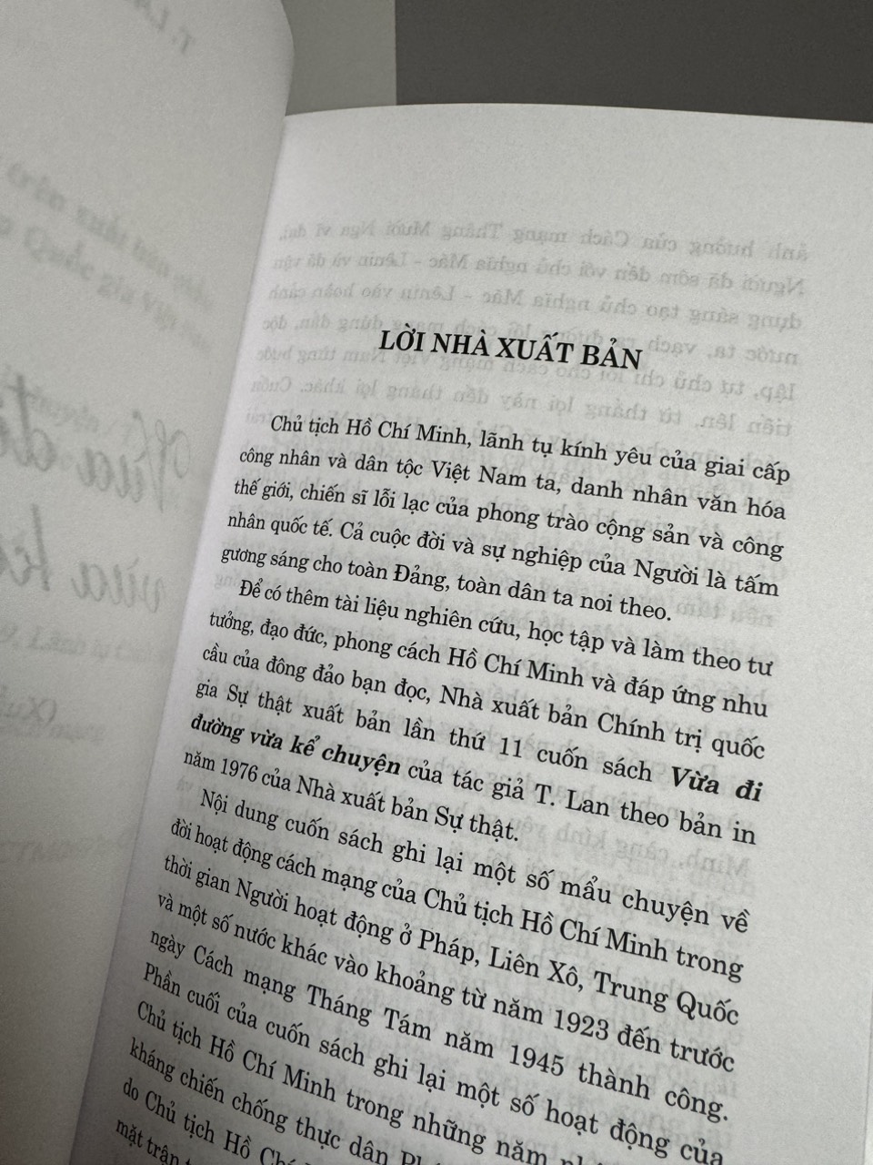 Cuốn sách “Vừa đi đường vừa kể chuyện” ghi lại một số mẩu chuyện về đời hoạt động cách mạng của Chủ tịch Hồ Chí Minh trong thời gian Người hoạt động ở Pháp, Liên Xô, Trung Quốc và một số nước khác vào khoảng từ năm 1923 đến trước ngày Cách mạng Tháng Tám năm 1945 thành công. Phần cuối của cuốn sách ghi lại một số hoạt động của Chủ tịch Hồ Chí Minh trong những năm nhân dân ta kháng chiến chống thực dân Pháp. Những chuyện này do Chủ tịch Hồ Chí Minh kể lại trên đường Người ra mặt trận trong chiến dịch Biên giới năm 1950.
