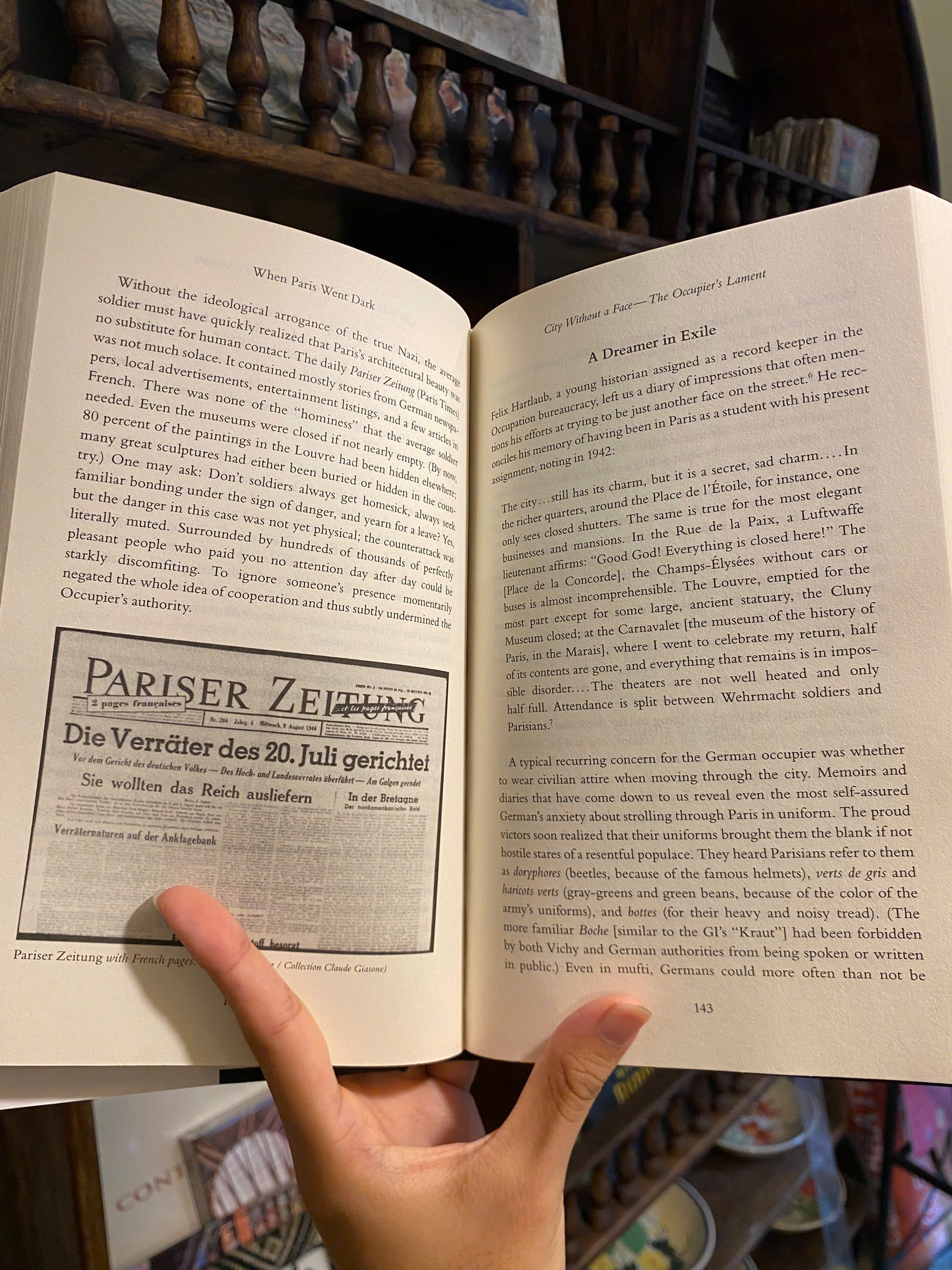 Cuốn sách tái hiện một cách chính xác đến kinh ngạc những chi tiết về cuộc sống thường nhật trong một thành phố bị chiếm đóng, và những con người dũng cảm đã chiến đấu chống lại bóng tối. Từ hồi ký, nhật ký, thư từ, lưu trữ, phỏng vấn, lịch sử cá nhân, tờ rơi và áp phích, tiểu thuyết, ảnh, phim và nghiên cứu lịch sử, Rosbottom đã tạo nên một cuốn sách đột phá, sẽ mãi mãi ảnh hưởng đến cách chúng ta hiểu về những năm tháng đen tối đó tại Kinh đô Ánh sáng.