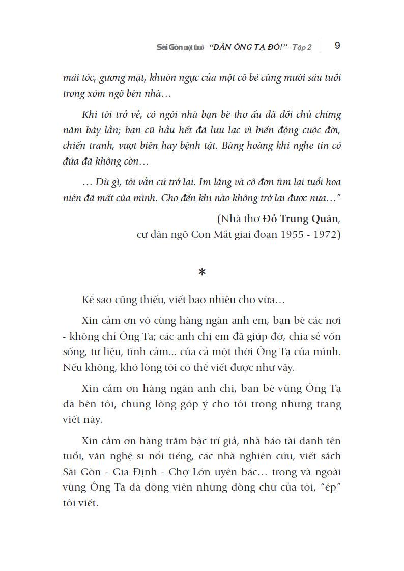 Không chỉ thấm đẫm hoài niệm, tình cảm và tâm huyết của tác giả Cù Mai Công, những ký ức về một khoảng trời tuổi thơ Ông Tạ được anh khắc họa trong tập sách Sài Gòn một thuở:“Dân Ông Tạ đó!”- Tập 2 còn góp phần làm phong phú thêm những câu chuyện về ký ức Sài Gòn xưa.