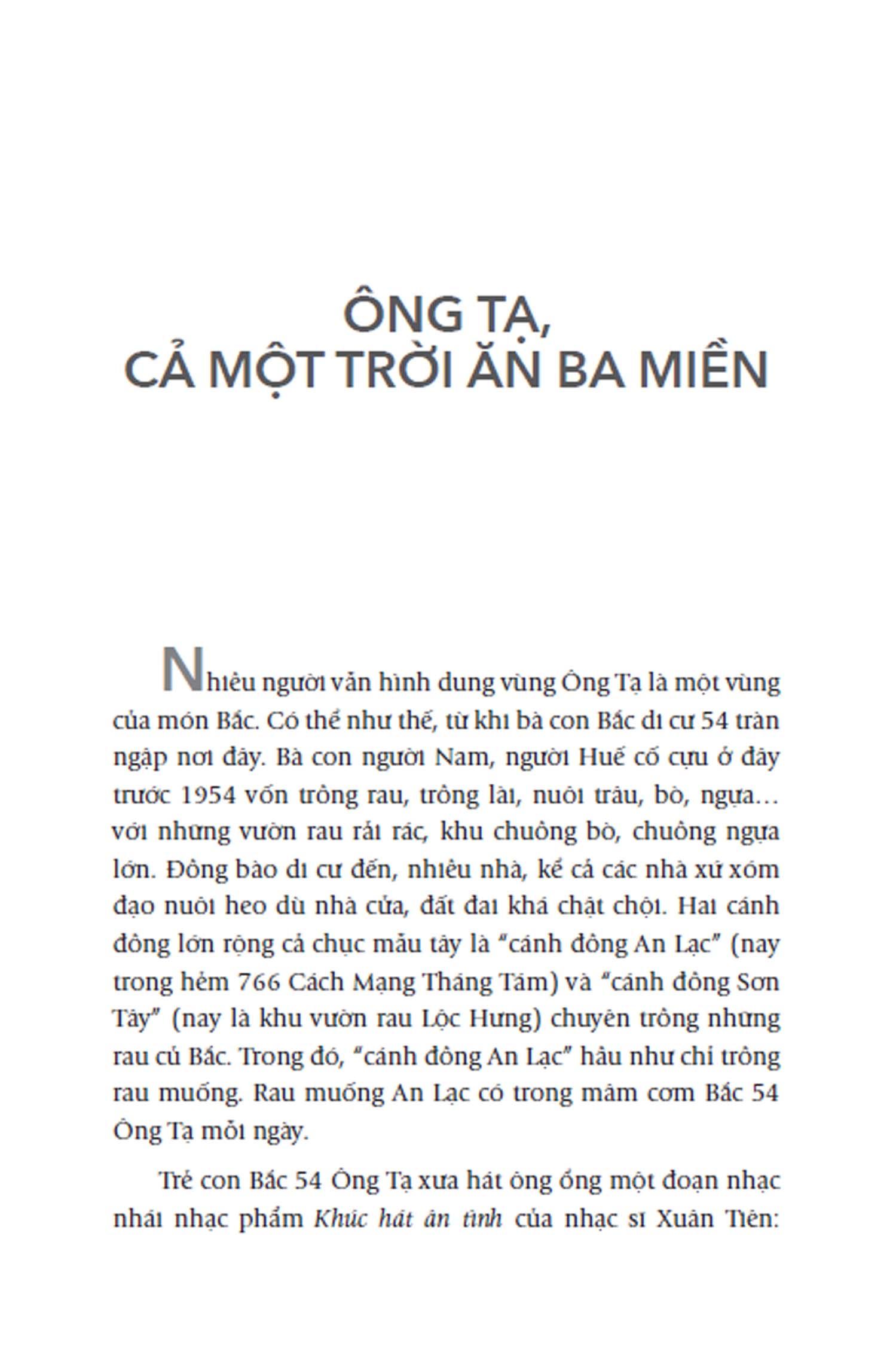 Khi đọc Sài Gòn một thuở: “Dân Ông Tạ đó!” tập 3, chúng ta cũng sẽ có cảm nhận tương tự. Tuy nhiên, lần này tác giả đã giới thiệu Ông Tạ theo một cách khác. Không phải bằng bản đồ, công trình kiến trúc, hay những con đường… mà bằng những thứ vô hình như mùi vị, cảm giác… Cù Mai Công đã khéo léo đưa chúng ta bước vào một thế giới khác, để chạm tới phần “hồn cốt” của cộng đồng những người Bắc 54, đặc biệt là cư dân vùng Ông Tạ.