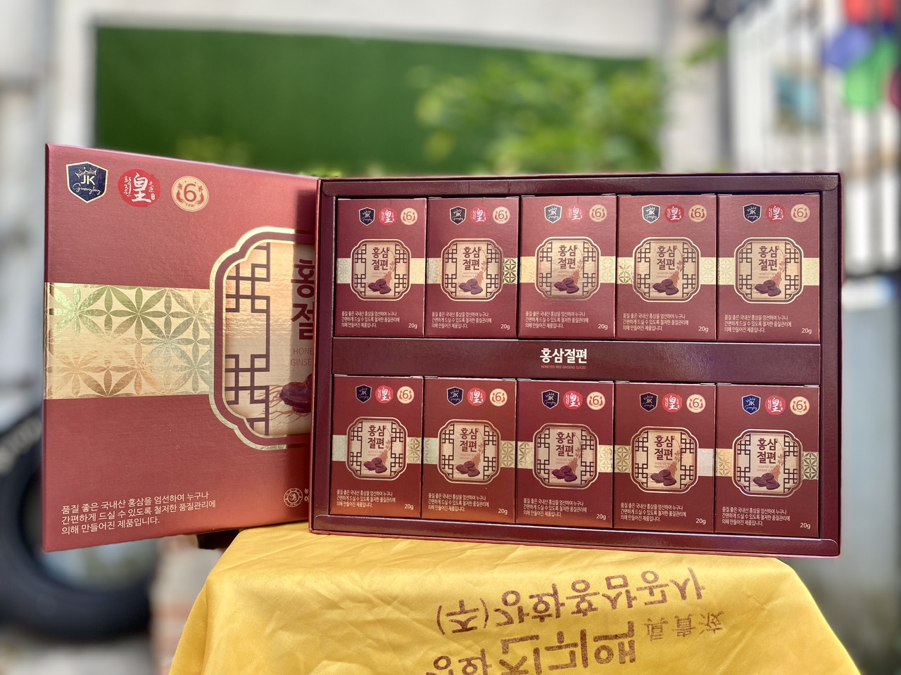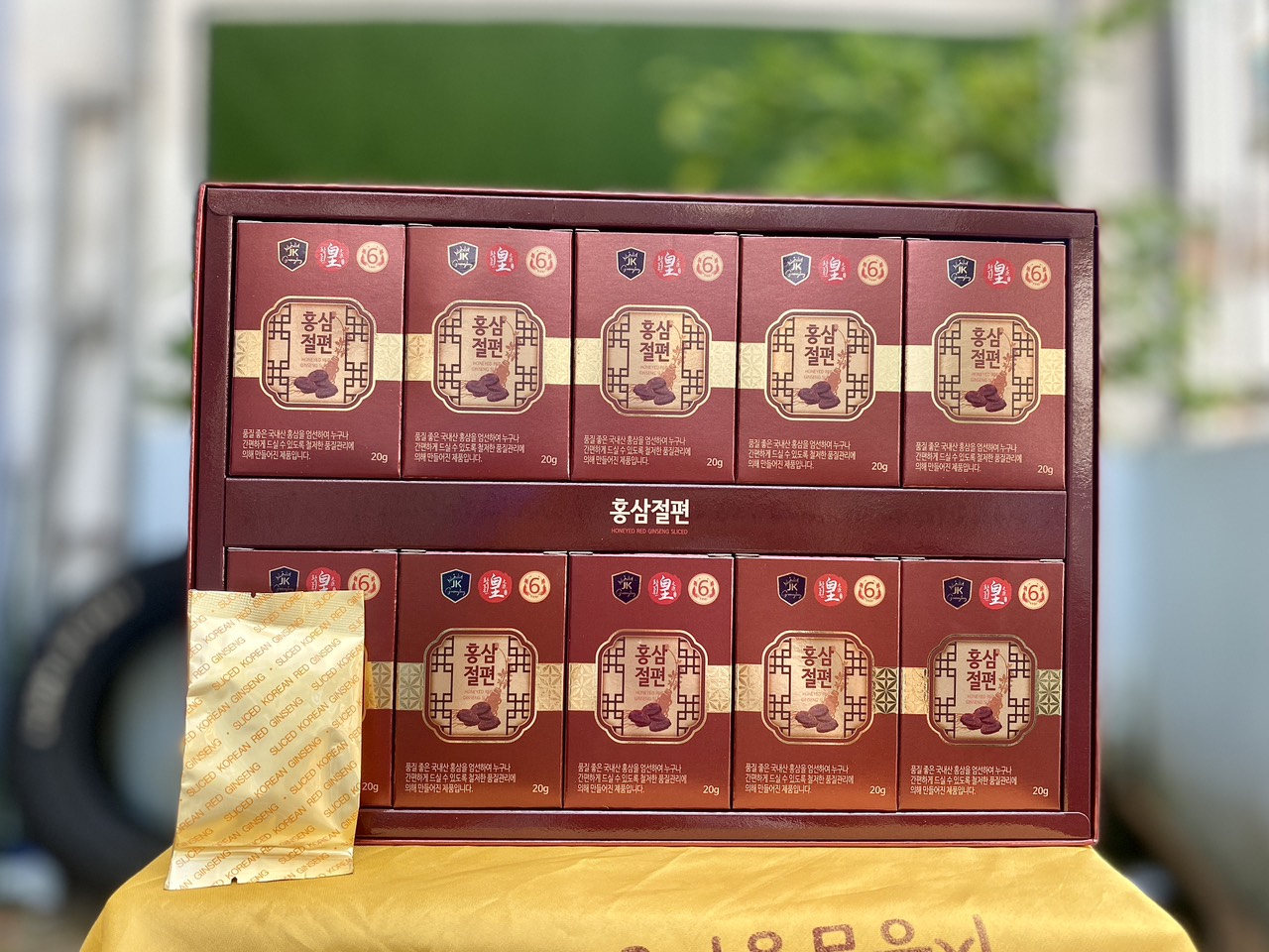 [VTV-HYUNDAI] YUJIM- Hộp 10 gói hồng sâm lát tẩm mật ong + 1 hộp trà sâm