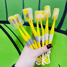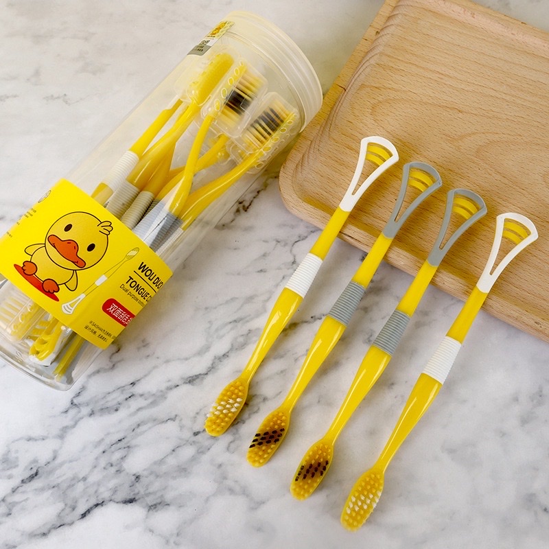 -Sản phẩm dụng cụ vệ sinh  -Hộp 8 cây bàn chải cho bé 2 in 1 kèm dụng cụ cạo lưỡi ,cán cầm chống trượt ,lông bàn chải sợi tơ siêu mềm , giúp chải răng sạch hơn , giảm vi khuẩn gây sâu răng và hôi miệng an toàn và tiện lợi  -Xuất xứ : Trung Quốc -Chất liệu : nhựa PP cao su  -Kích thước : dài 19cm -Màu sắc :  giao màu ngẫu nhiên -Đặc điểm nổi bật : -Thiết kế lông bàn chải từ hàng trăm sợi tơ siêu mềm , len lỏi vào từng kẽ răng giúp chải răng sạch hơn  -Massage nướu lợi giúp loại bỏ những mảng bám cứng đầu nhấtcầm -Với thành phần từ hạt carbon an toàn cho sức khỏe răng miệng người dùng , lông mềm mịn an toàn  -Bàn chải thon gọn giúp đánh răng dễ dàng  -Cán làm từ nhựa kết hợp với lớp bọc cao su chống trượt cực tốt  -Phía cuối bàn chải được thiết kế thêm phần cạo tưa lưỡi , giúp giảm vi khuẩn gây sâu răng và hôi miệng  -Thiết kế hình vịt vàng xin xắn ,đáng yêu ngộ nghĩnh ,kích thích nhu cầu đánh răng hằng ngày cho các bé  Sản phẩm này là tài sản cá nhân được bán bởi Nhà Bán Hàng Cá Nhân và không thuộc đối tượng phải chịu thuế GTGT. Do đó hoá đơn VAT không được cung cấp trong trường hợp này.