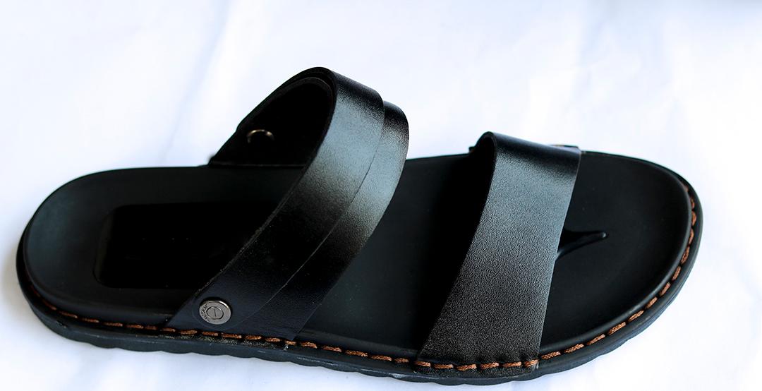 Da bò chuẩn (thớ da dày) - mặt mịn, quai dép khâu chỉ chắc chắn, đi nắng mưa thoải mái.