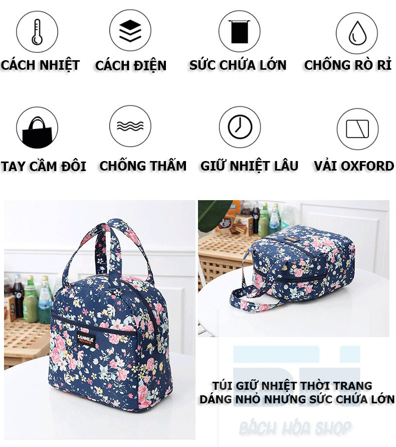 Chất liệu: Bên ngoài Vải, bên trong túi là lớp nhôm giữ nhiệt Mẫu mã: gồm 4 mẫu như hình Kích thước: 21cmx11cmx20cm Trọng lượng: 120g Thích hợp: mang đi làm, đi học, du lịch,