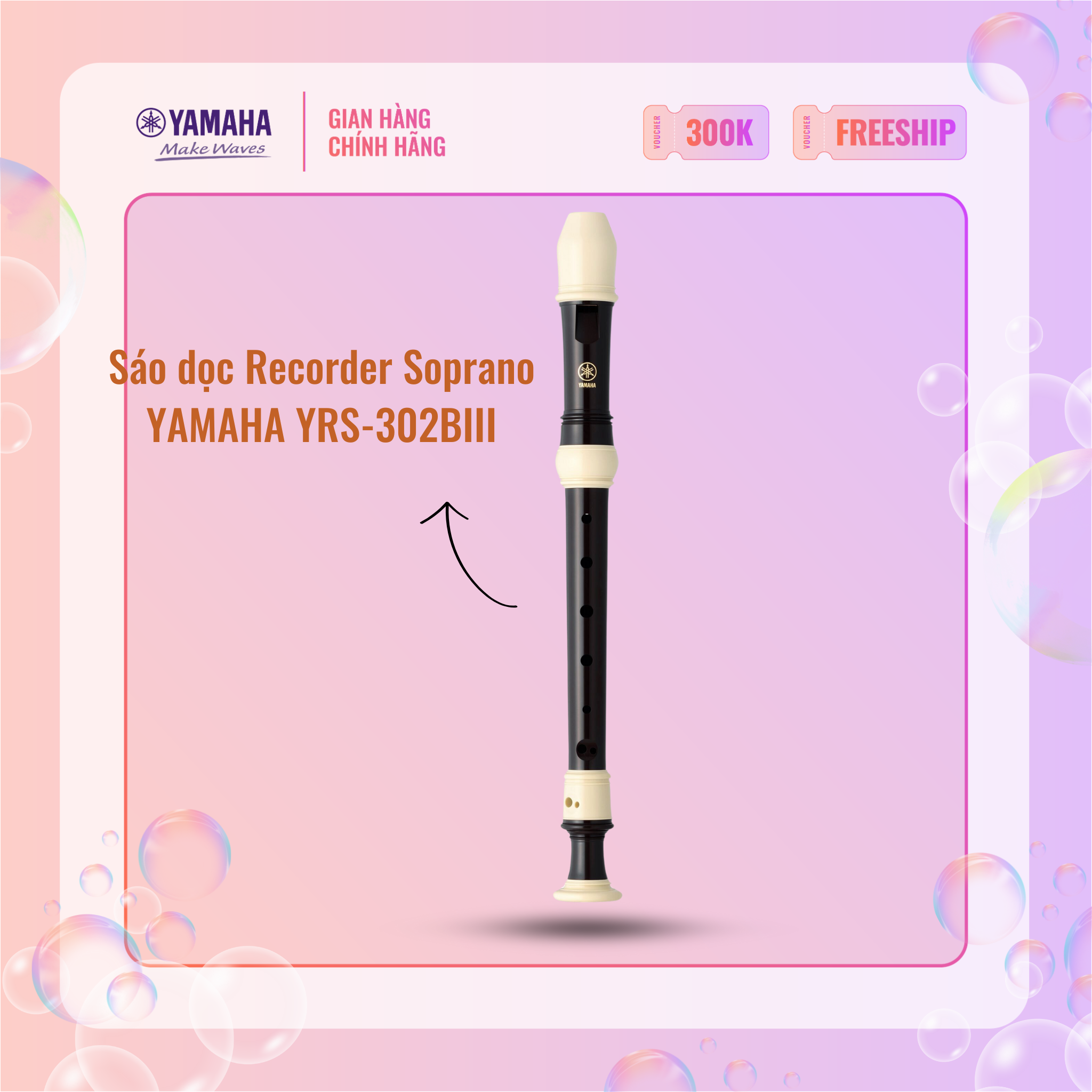 ✨Sáo dọc Recorder Soprano YAMAHA YRS-302BIII kèm túi đựng, dụng cụ vệ sinh, kem bôi khớp nối - Nốt thổi Baroque, tiêu chuẩn giáo dục quốc tế