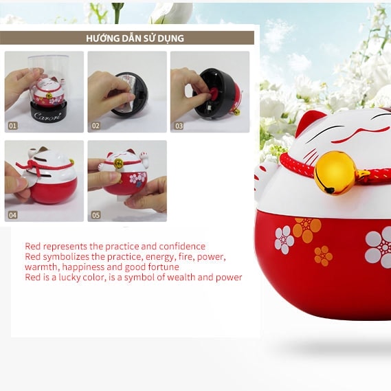 Mua tại TiktokMèo Thần Tài còn được gọi là mèo chiêu tài. Trong phong thủy, mèo là linh thú cát tường, có thể hóa giải sát khí nhờ linh lực của nó. Mèo Thần Tài để ô tô có kích cỡ 8 x 8 cm, phù hợp để trưng bày trên xe hơi với ý nghĩa mang tới nhiều may mắn, giúp bạn bình an trong mỗi chuyến đi. Ngoài ra, thiết kế sáp thơm Carori mèo thần tài với hương thanh dịu nhẹ mang tới cảm giác khoan khoái, thư giãn trong suốt cuộc hành trình. Sản phẩm cũng có thể dùng để tại bàn làm việc với ý nghĩa may mắn, thịnh vượng, phát đạt Sáp thơm ô tô Carori mèo thần tài biểu tượng của sự may mắn, quyền lực và của cải. Nguyên liệu nhập khẩu từ Pháp, 100% chiết xuất tự nhiên Hương thanh dịu nhẹ mang tới cảm giác khoan khoái, thư giãn trong suốt cuộc hành trình