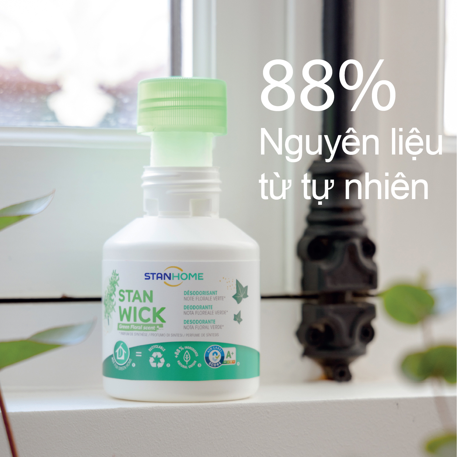 - Loại bỏ, hấp thụ và khử mùi khó chịu nhờ công nghệ khử mùi ưu việt được phát triển độc quyền của nhãn hàng Stanhome. STAN WICK GREEN FLORAL là sự kết hợp của những nốt hương tinh tế từ Dạ Lan Hương và hoa Nhài, thấm quyện hoàn hảo tạo nên tầng hương hoa cỏ mùa xuân thanh khiết, thơm mát trừ khử - loại bỏ triệt để mùi khó chịu dù là cứng đầu nhất cho không gian sống.